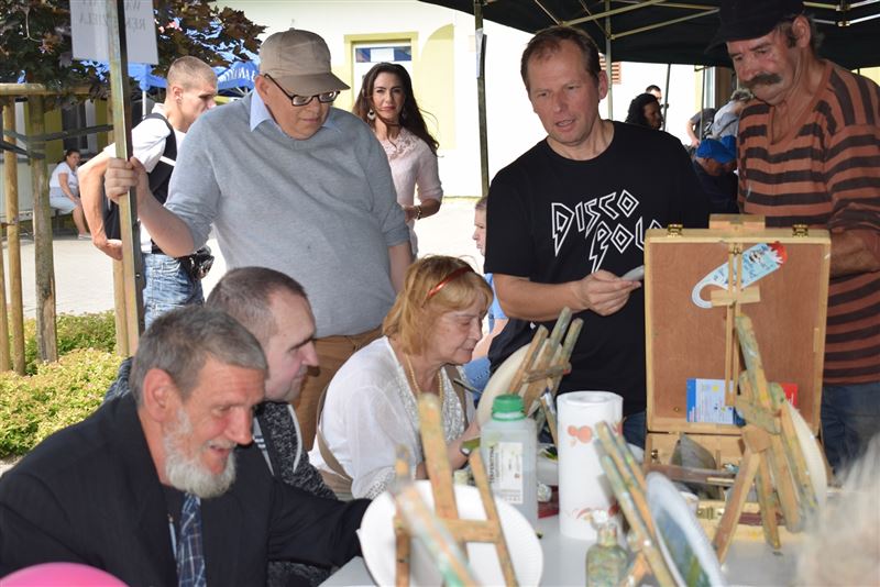 Nasi mieszkańcy bardzo ochoczo wzięli udział w warsztatach malarskich oraz muzycznych, pogłębiając swoje skryte talenty. Dużą atrakcją był również układ taneczny przygotowany przez wszystkich obecnych na spotkaniu. Podczas zabawy można było spotkać również szczudlarza, rozdającego napotkanym gościom upominki.