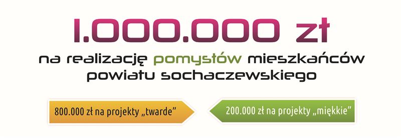 Starostwo Powiatowe w Sochaczewie na realizację zadań w ramach Powiatowego Budżetu Obywatelskiego na 2019 rok zabezpieczyło w swoim budżecie kwotę 1 mln złotych. 800 tysięcy przeznaczonych zostanie na zadania tzw. „twarde”, zaś pozostałe 200 tysięcy na realizację zadań tzw. „miękkich”.