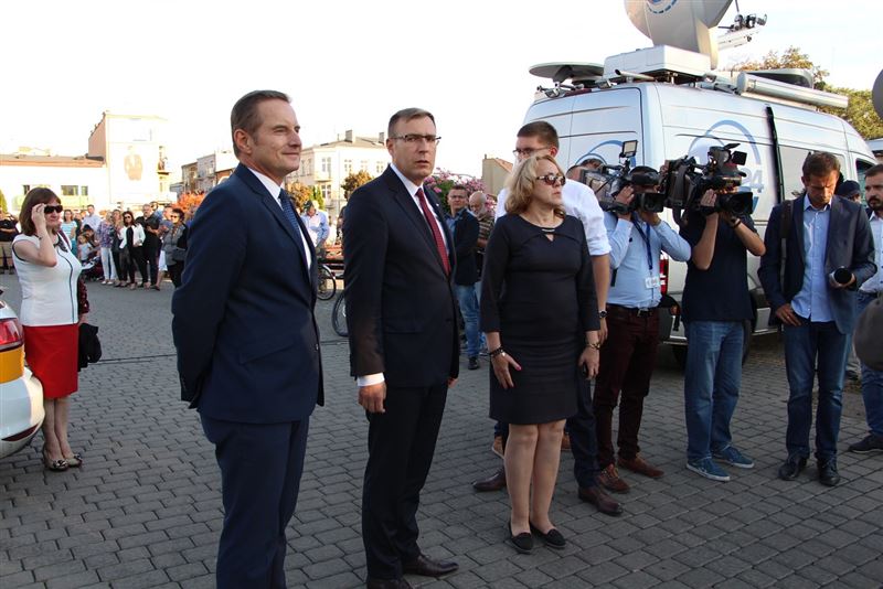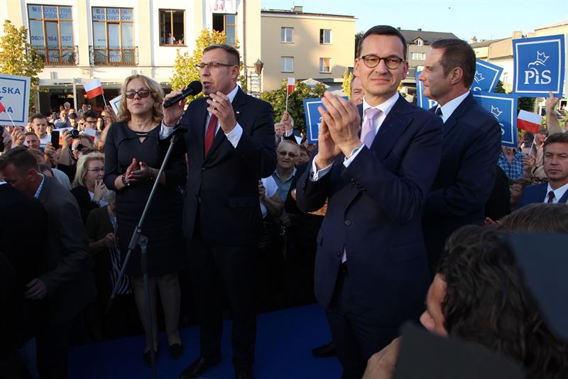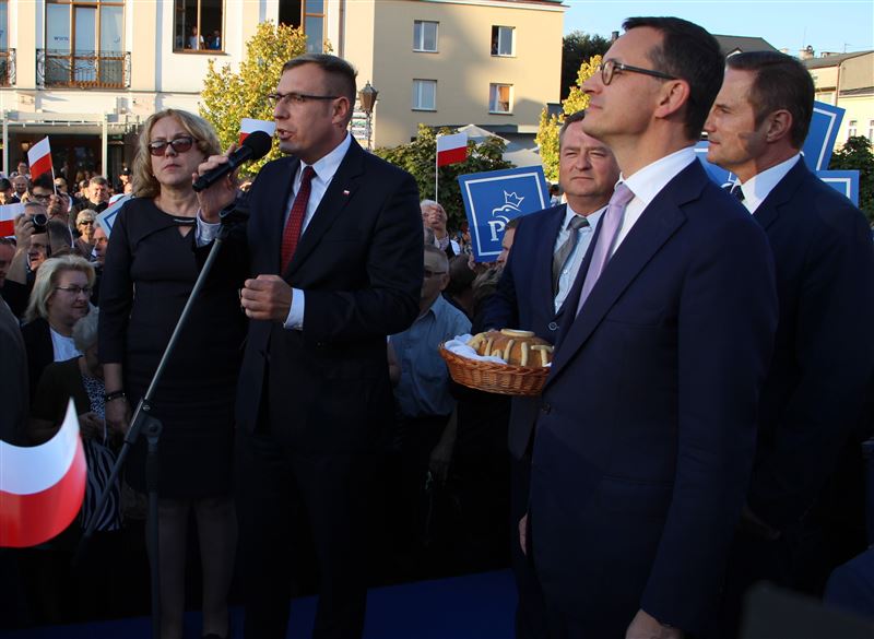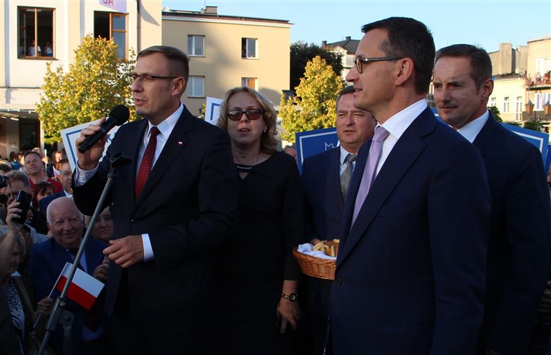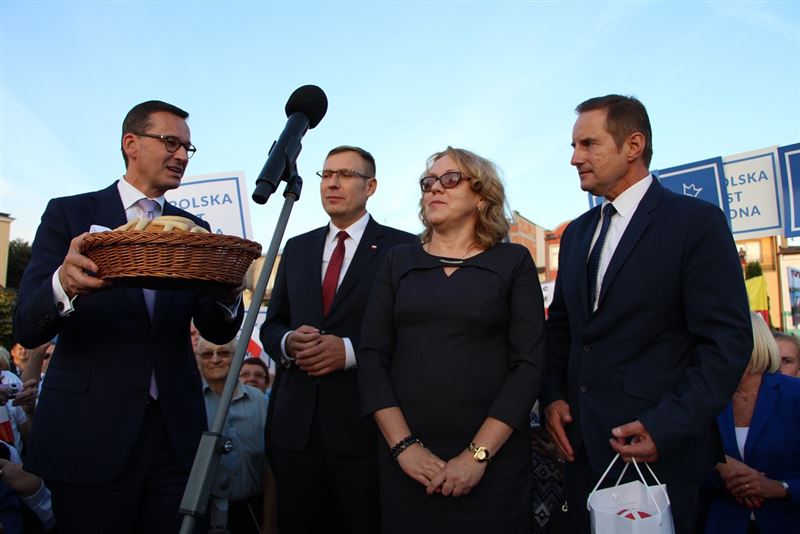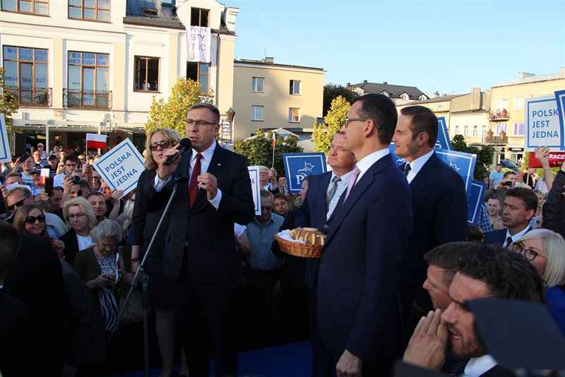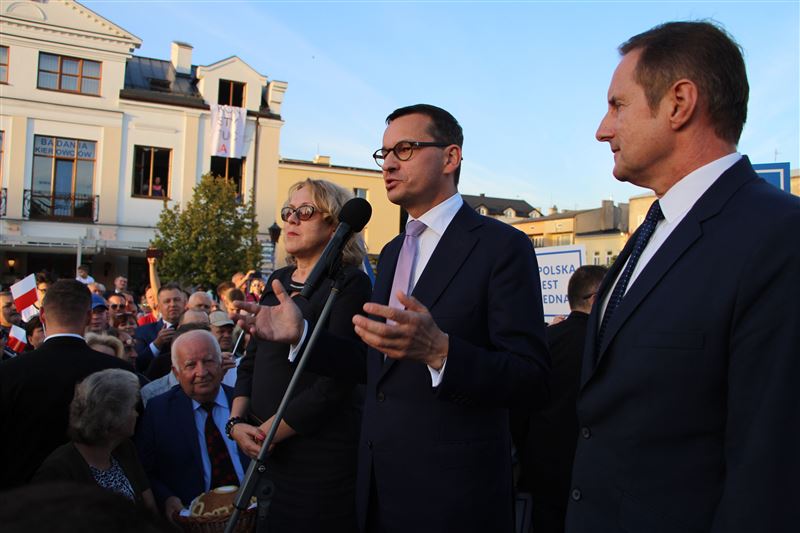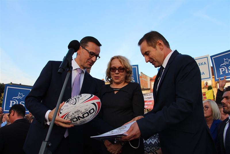 Wiele znakomitych informacji przywiózł nam ze sobą wyjątkowy gość Sochaczewa, jakim był Premier Mateusz Morawiecki. W poniedziałkowym (17.09) spotkaniu na Placu Kościuszki w Sochaczewie uczestniczyło kilkuset mieszkańców powiatu sochaczewskiego. Premier Morawiecki przyjechał na zaproszenie posła na Sejm RP Ziemi Sochaczewskiej Macieja Małeckiego. Podczas spotkania Premierowi towarzyszyły władze powiatu, którą reprezentowali m.in. starosta Jolanta Gonta, wicestarosta Tadeusz Głuchowski, przewodniczący Rady Powiatu Andrzej Kierzkowski, a także członkowie Zarządu Powiatu – Anna Ulicka, Bożena Samson i Andrzej Grabarek. Starosta Gonta i burmistrz Sochaczewa Piotr Osiecki przekazali Premierowi wspólny prezent, którym była piłka rugby z autografami zawodników Orkana. – Ta piłka jest symbolem dyscypliny, która wypromowała Sochaczew nie tylko na ogólnopolskiej arenie. Wiąże się z grą, w której uczestniczą ludzie odważni, twardzi, konsekwentni, ale i wrażliwi, właśnie z takimi cechami kojarzy nam się postać premiera Morawieckiego – przyznali wspólnie burmistrz Osiecki i starosta Gonta, dziękując gościowi za wizytę.