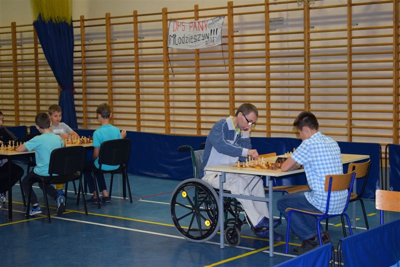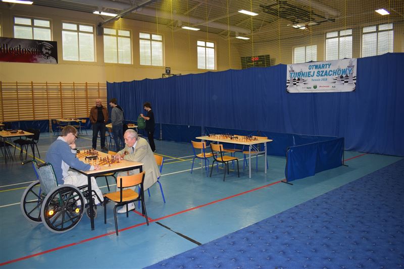 Reprezentacja mieszkańców Domu Pomocy Społecznej w Młodzieszynie w składzie: Adam Pakuła, Andrzej Kwoka, Wojciech Mosakowski z sekcji szachowej naszego domu oraz wierna kibicka Wioletta i opiekun Marcin Hugo - Bader udali się na 9 edycję otwartego turnieju szachowego, który odbył się w Hali Widowiskowo - Sportowej w Teresinie. Organizatorami turnieju są: Stowarzyszenie Impuls i Gminny Ośrodek Sportu i Rekreacji. Wzięło udział około 60 zawodników, zrzeszonych w różnych klubach, sekcjach, profesjonalistów oraz amatorów. Rywalizacja na szachownicy była zacięta, każdy z graczy zagrał 7 rund w systemie szwajcarskim, w tempie gry: 15 minutowa partię dla zawodnika. Nasza drużyna wypadła całkiem dobrze, przywieźliśmy komplet punktów. W rywalizacji zawodników uplasowaliśmy się w drugiej dwudziestce. Sędzią spotkania był Pan Andrzej Żochowski, który wraz z asystentem czuwał nad dobrym przebiegiem całego turnieju. Każdy turniejowy gracz otrzymał pamiątkowy dyplom, a zwycięzcy poszczególnych kategorii interesujące nagrody. Wróciliśmy co prawda bez pucharów, ale w dobrych nastrojach i czekamy na kolejne turnieje. Atmosfera zdrowej rywalizacji podczas trwania szachowego spotkania była bardzo miła.