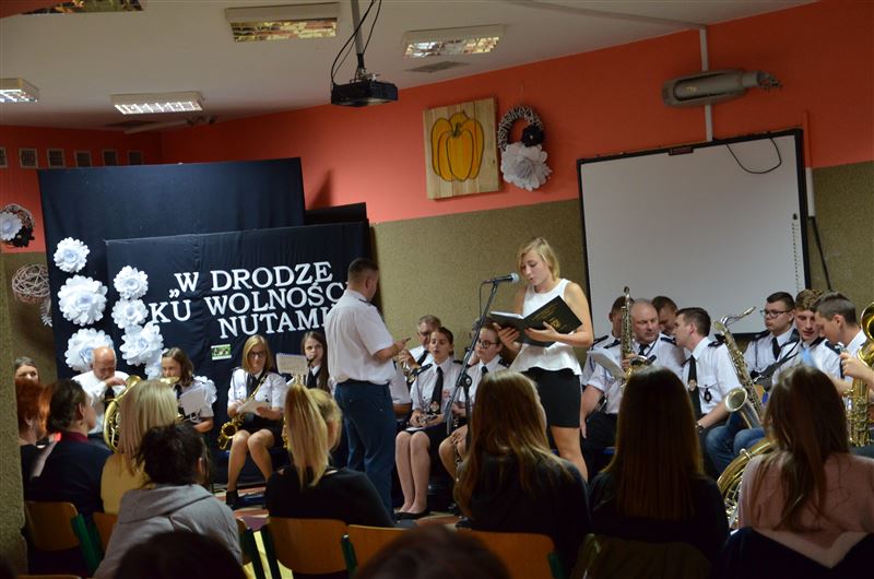 Odczytywane fragmenty były przeplatane utworami patriotycznymi wykonywanymi przez Orkiestrę Dętą i solistów. Krótką historię utworów przybliżała nasza wychowanka- Dominika. Zaproszeni goście oraz wychowanki mogli usłyszeć następujące pieśni patriotyczne: „Ojczyzno ma”, „Pierwsza Kadrowa”, „ Pałacyk Michla”, „Rozkwitały pąki białych róż”, „Wojenko, wojenko”, „Przybyli ułani”, „Pierwsza Brygada”, „Serce w plecak”, „Piechota”.