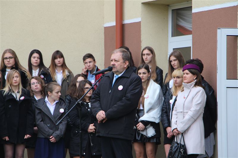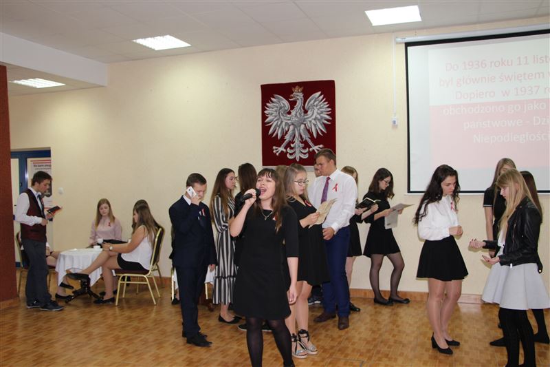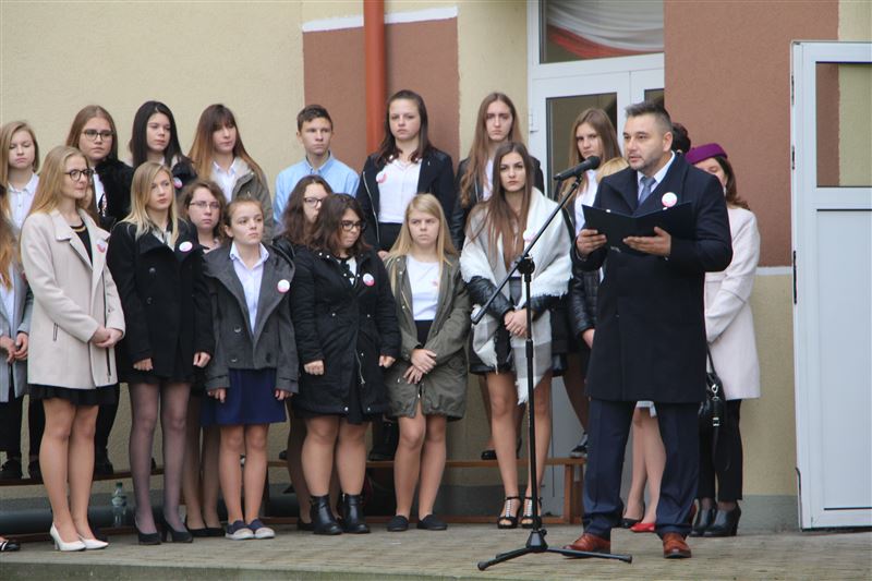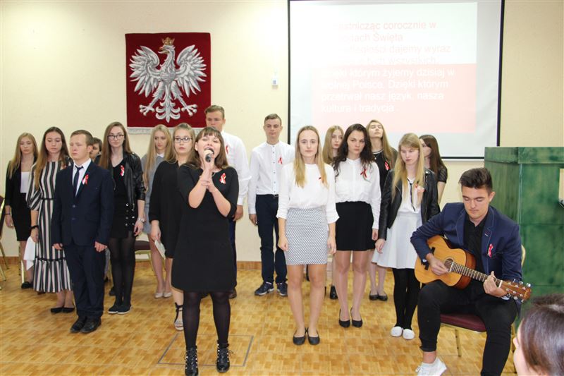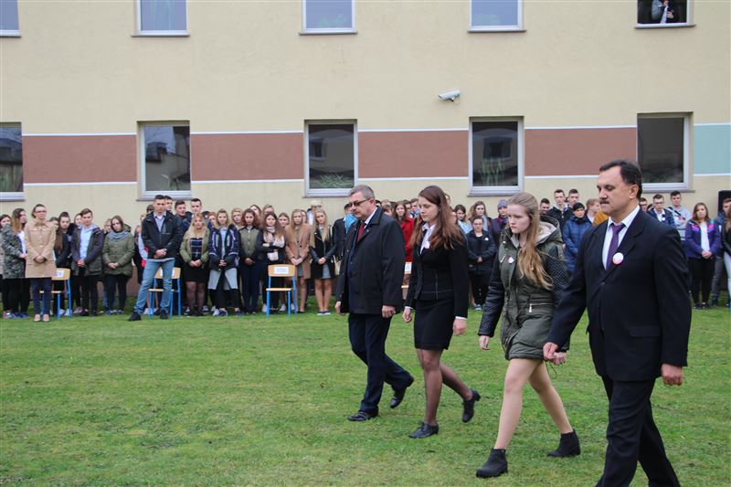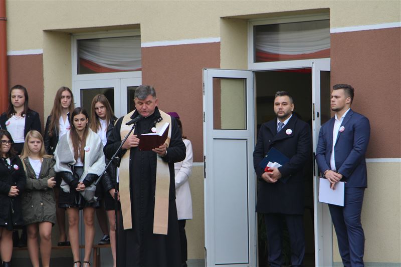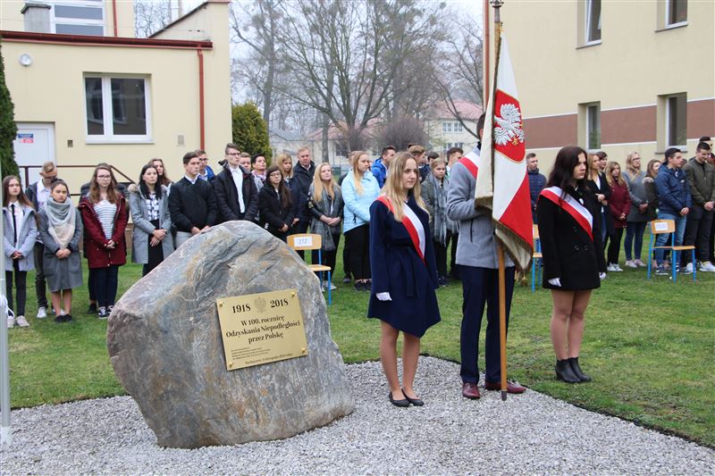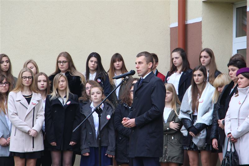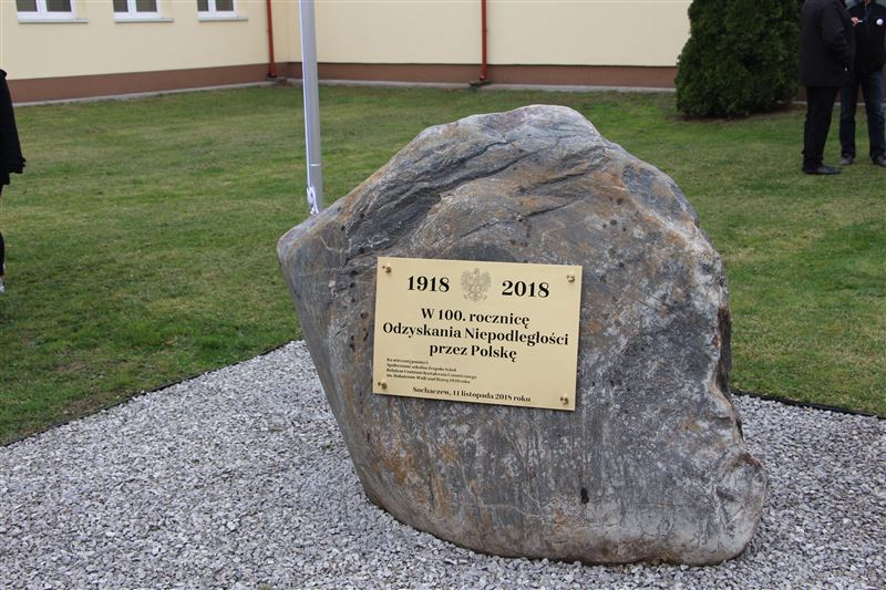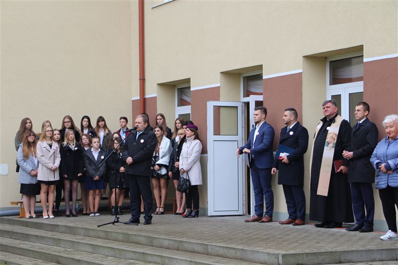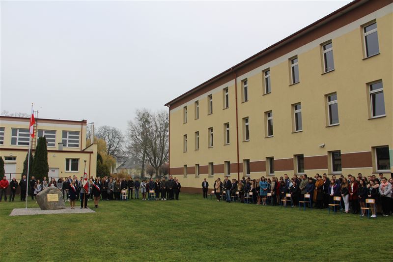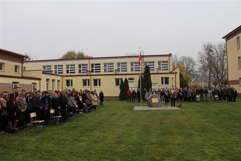 Do tego wydarzenia społeczność szkoły przygotowywała się od dłuższego czasu. Dzięki współpracy wielu osób, w tym absolwentów udało się wszystko sprawnie zorganizować. Na placu, na terenie szkoły uroczyście odsłonięto okolicznościową tablicę dla upamiętnienia 100. rocznicy odzyskania przez Polskę Niepodległości. Zebranych gości przywitał dyrektor placówki – Marek Wernicki. Nie mogło zabraknąć takich akcentów jak odśpiewanie całego hymnu, obecność sztandaru szkoły czy wywieszenie flagi na maszt. W wydarzeniu tym, oprócz całej społeczności szkoły, tj. uczniów, nauczycieli i dyrekcji oraz pracowników udział wzięli także emerytowani nauczyciele, w tym były dyrektor szkoły Jerzy Michalak a także zaproszeni goście - Łukasz Gołębiowski, dyrektor biura poselskiego posła Macieja Małeckiego i radny sejmiku woj. mazowieckiego, wicestarosta sochaczewski Tadeusz Głuchowski a także Urszula Opasiak, dyrektor Powiatowego Zespołu Edukacji. Zarówno wicestarosta, jak i radny sejmiku podkreślali o ważności tych uroczystości, o trudnej historii, o polskości. Przypomnieli, że Bóg, honor i Ojczyzna to hasła, które dla nas Polaków były ważne na przestrzeni tysięcy lat, ale są też ważne i teraz. Należy o tych wartościach pamiętać każdego dnia. Dyrektor szkoły zaś zapewniał, iż to miejsce będzie szczególne dla uczniów i nauczycieli nie tylko w obchodach ważnych świąt i uroczystości, ale będzie stanowić istotną przestrzeń, wokół której będzie zbierać się młodzież choćby podczas przerwy między zajęciami. W planach bowiem rozbudowanie jest tego miejsca, tak, by było bardziej przyjazne uczniom.