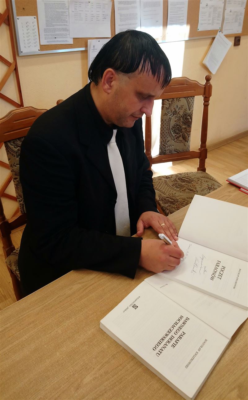 Rok 2018 wyznacza rocznicę szczególną – jest to bowiem już setna rocznica odzyskania przez Polskę niepodległości. Zdaniem Prezydenta Andrzeja Dudy jubileusz jest doskonałą okazją, by opowiedzieć dzieje ojczyste także poprzez – często mniej znane – historie lokalne. Na zaproszenie dyrektor Ewy Odolczyk i nauczyciela Stanisława Paga gościliśmy w murach naszej szkoły Bogusława Kwiatkowskiego – historyka, autora książek i artykułów o tematyce historycznej, Podczas spotkania autor opowiedział o nieznanych, często przemilczanych przez kilkadziesiąt lat faktach i wydarzeniach z historii Sochaczewa i Teresina. Jego gawęda historyczna "Zdań kilka o odzyskaniu przez Polskę niepodległości, w czasach kiedy nie było smartfonów" to opowieści o niezwykłych ludziach, wydarzeniach, o zaskakujących zwrotach akcji w lokalnej historii. Z prelekcji zaproszonego historyka mogliśmy dowiedzieć się, że Marszałek Józef Piłsudski nie tylko posiadał w Sochaczewie honorowe obywatelstwo przyznane mu przez Radę Miejską, ale także pomnik i ulicę swego imienia. Autor przy okazji zbierania materiałów do kolejnej książki o dziejach Sochaczewa odkrył burzliwe kulisy wizyty prezydenta RP Ignacego Mościckiego w mieście (burmistrz, który zaprosił prezydenta stracił posadę m.in. z powodu zbyt dużych wydatków na zaledwie godzinną wizytę najwyższego dostojnika państwowego). Kiedy po raz pierwszy popłynął w mieście prąd, jakie ukazywały się czasopisma, jakie znajdowały się w mieście sklepy i lokale usługowe, jakie istniały organizacje i stowarzyszenia, jak przebiegały uroczystości państwowe w mieście, który z wiceburmistrzów przebywał na zsyłce na Syberii, który ze starostów sochaczewskich chciał za wszelką cenę zlikwidować kolej wąskotorową? Odpowiedzi na te i wiele innych zadawanych podczas spotkania pytań usłyszeli uczniowie. Autor zachęcał do odwiedzenia biblioteki szkolnej i zapoznania sie z bogatą ofertą książek o tematyce historycznej. Zaprezentował także książki swojego autorstwa. Przedstawienie faktów historycznych zaciekawiło wszystkich słuchaczy. W skupieniu i ciszy śledzili historyczny przebieg wydarzeń, a refleksja i zaduma wyrysowana była na niejednej twarzy. Lekcja patriotyzmu i wartości w niej przekazane pozostaną na długo w naszej pamięci. Na zakończenie pan Bogusław Kwiatkowski wpisał się do szkolnej kroniki.