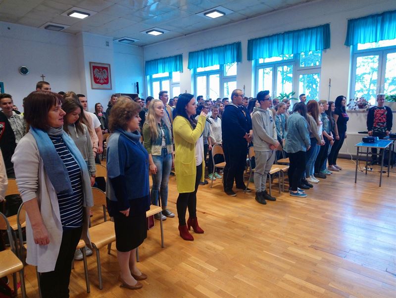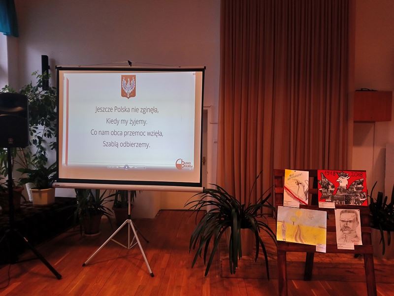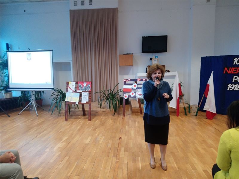 Zwieńczeniem obchodów 100. Rocznicy Odzyskania przez Polskę Niepodległości było wspólne odśpiewanie hymnu w piątek 9 listopada br. o godzinie 11.11 przez całą społeczność szkolną. Dyrektor Ewa Odolczyk w swoim wystąpieniu zachęcała do włączenia się w obchody 11 listopada na terenie naszej gminy i powiatu. Życzyła także wszystkim obecnym, by 12 listopada spędzili czas wśród najbliższych, w gronie rodzinnym, by w radosnej, patriotycznej atmosferze godnie świętować setną rocznicę odzyskania przez Polskę Niepodległości.