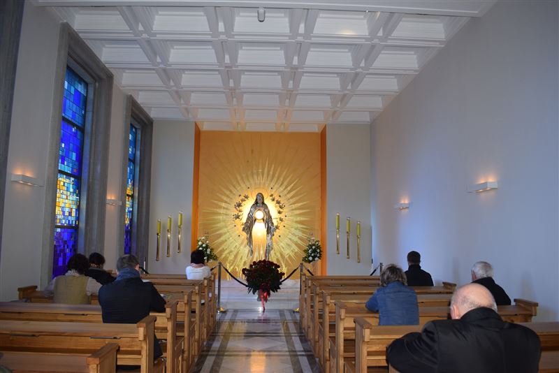 W czwartek 15 listopada br. mieszkańcy Domu Pomocy Społecznej w Młodzieszynie oraz terapeuci udali się z pielgrzymką do Kaplicy Wieczystej Adoracji Najświętszego Sakramentu, która znajduję się w Bazylice Mniejszej w Niepokalanowie. Miejsce to jest ósmym Światowym Centrum Modlitwy o Pokój, które należy do 12 gwiazd w Koronie Maryi Królowej Pokoju.