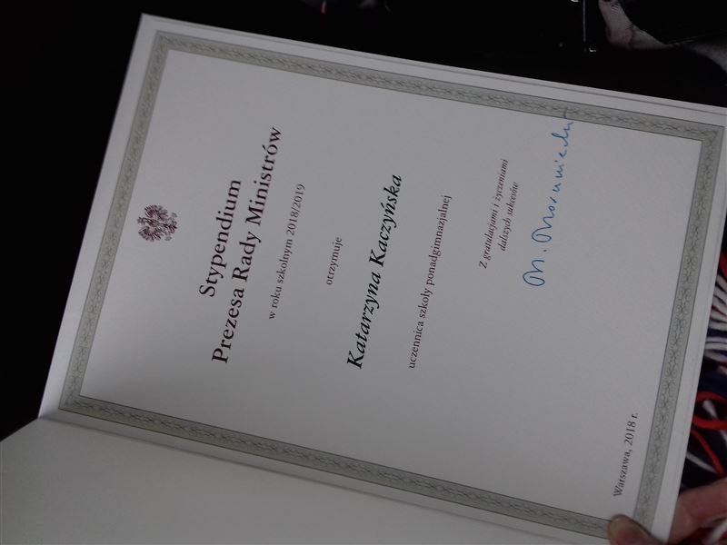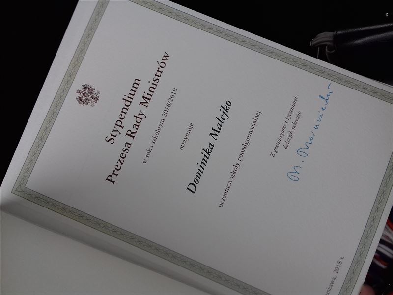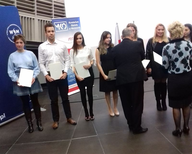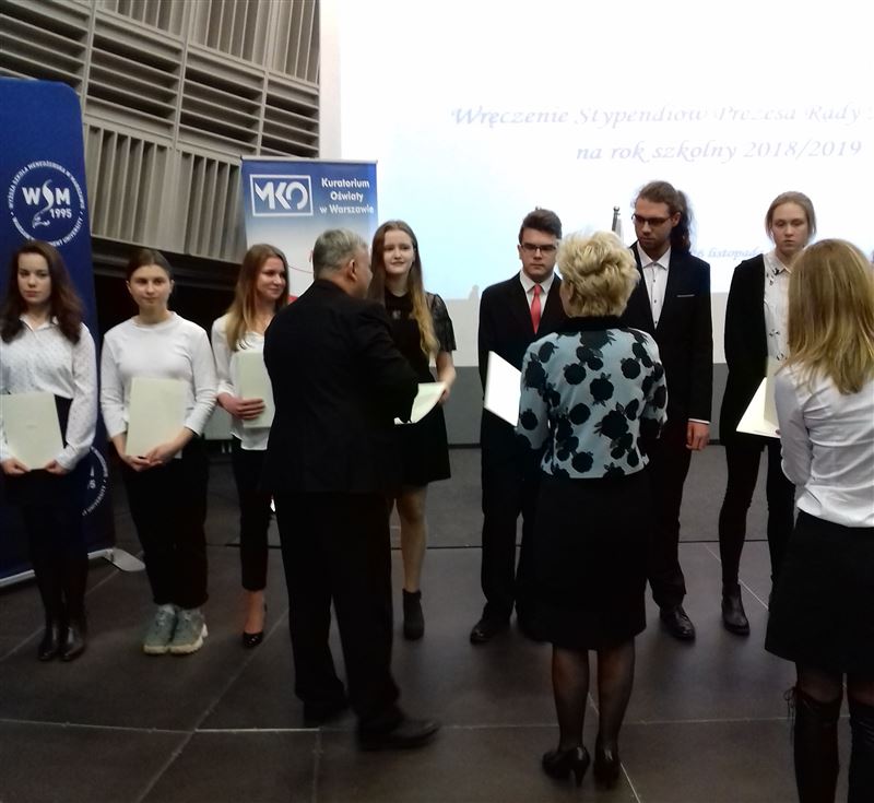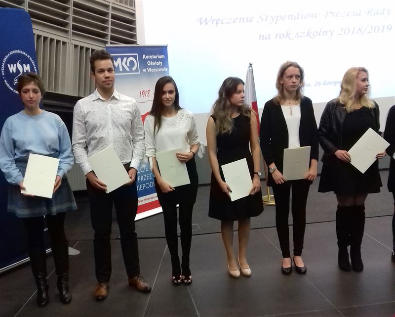 26 listopada w Wyższej Szkole Menedżerskiej w Warszawie odbyła się uroczystość wręczenia dyplomów Prezesa Rady Ministrów stypendystom z okręgu warszawskiego. Jest nam niezmiernie miło, że wśród wyróżnionych uczniów znalazły się uczennice naszej szkoły Dominika Malejko z klasy IIITŻb i Katarzyna Kaczyńska z klasy III LOb.