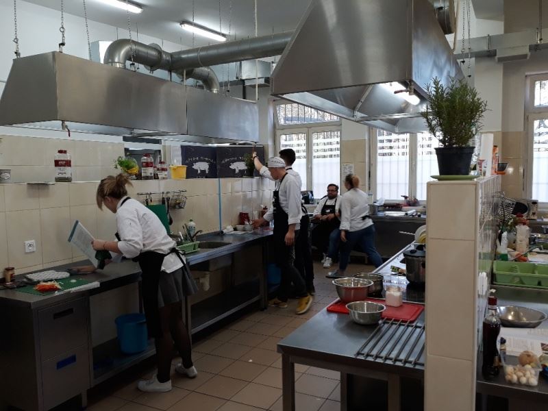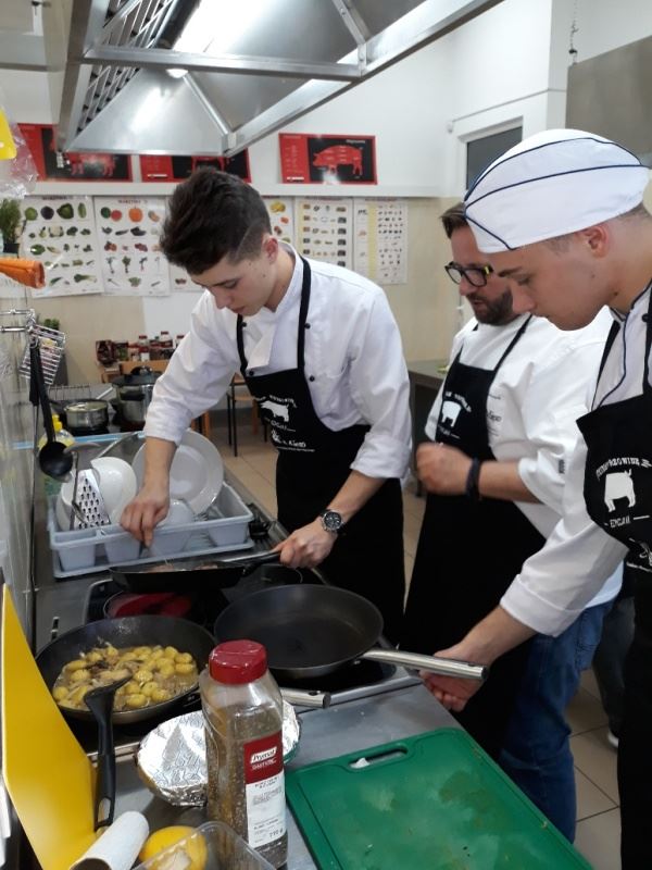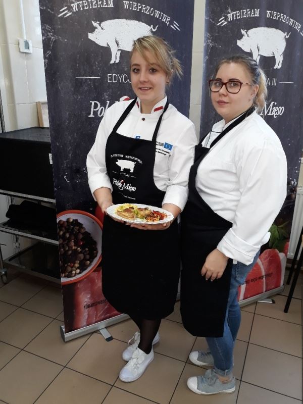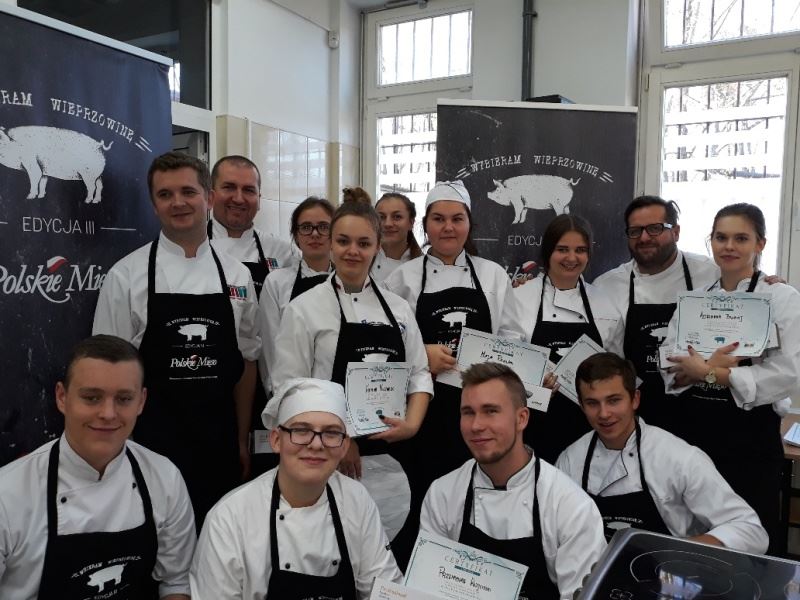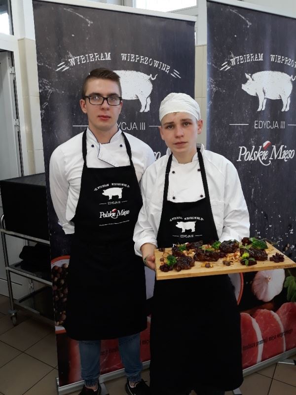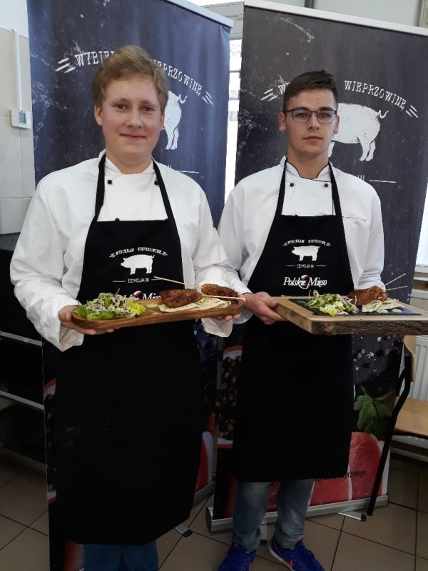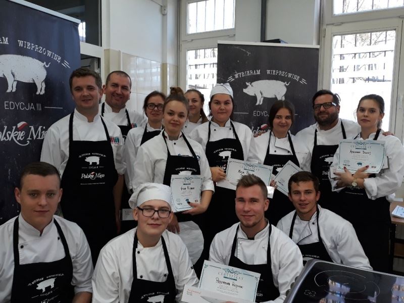 Wisienką na torcie spotkania była część praktyczna warsztatów, w której uczestniczyło 20 uczniów. Pod okiem kucharzy Akademii Kulinarnej Marcina Budynka sporządzali potrawy z wieprzowiny m. in. żeberka w sosie BBQ, schab grillowany sous-vide, kotlety wieprzowe z kością i polędwiczki. Obserwowali pracę instruktorów i pod ich czujnym okiem sporządzali dodatki do potraw i komponowali całe dania. Wszystko odbywało się pod presją czasu ale w bardzo sympatycznej atmosferze.