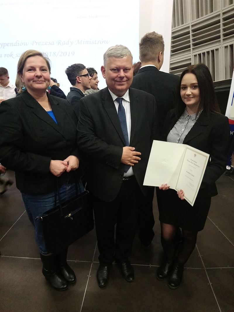 Karolina Cudnik odebrała prestiżowe stypendium z rąk ministra Marka Suskiego reprezentującego premiera Mateusza Morawieckiego oraz kurator Aurelii Michałowskiej.