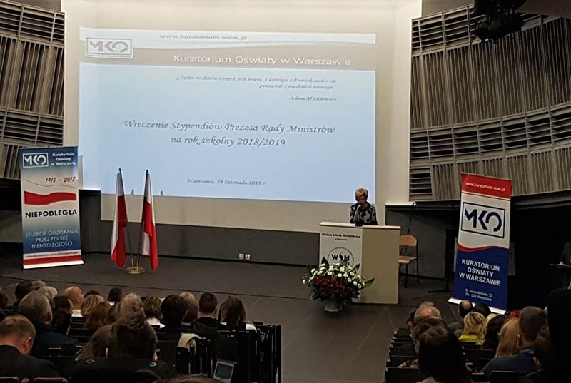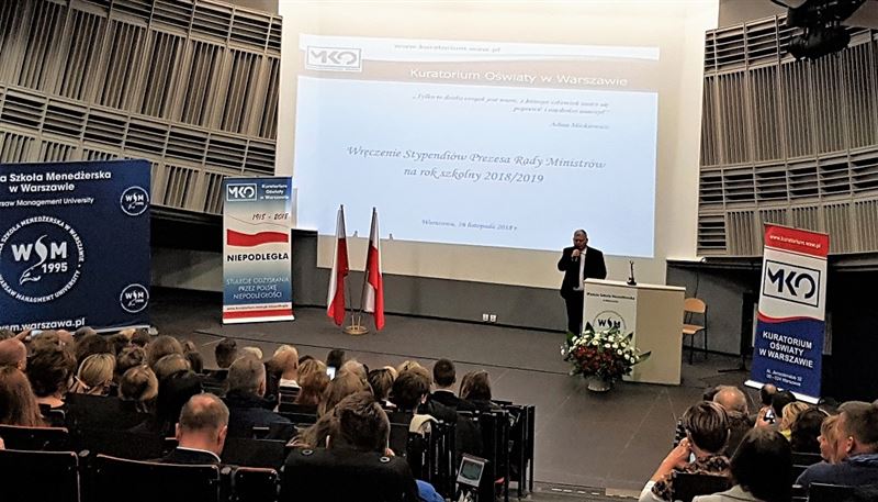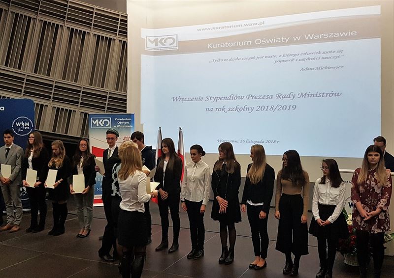 Tegoroczna uroczystość, podczas której wręczono na rok szkolny 2018/2019 dyplomy 278 stypendystom Prezesa Rady Ministrów z rejonu warszawskiego, miała miejsce 26 listopada 2016r w Wyższej Szkole Menedżerskiej w Warszawie. W wydarzeniu wzięli udział m.in: Marek Suski - szef Gabinetu Kancelarii Prezesa Rady Ministrów, Joanna Szczawińska - Dyrektor Generalny Ministerstwa Edukacji Narodowej, Artur Standowicz – Wicewojewoda Mazowiecki, Aurelia Michałowska - Mazowiecki Kurator Oświaty, Dorota Skrzypek - Mazowiecki Wicekurator Oświaty i Stanisław Dawidziuk – prezydent Wyższej Szkoły Menedżerskiej w Warszawie.