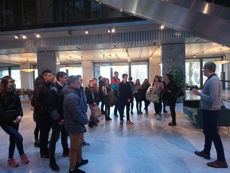 Wizyta rozpoczęła się od spotkania z pracownikiem GPW. Przybliżył młodzieży historię powstania oraz architekturę nowego budynku Giełdy, a także symbolikę zwierząt – byka i niedźwiedzia. Zwiedzający obejrzeli także Salę Notowań, gdzie znajduje się charakterystyczny dzwon giełdowy.