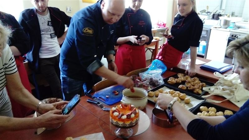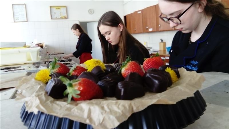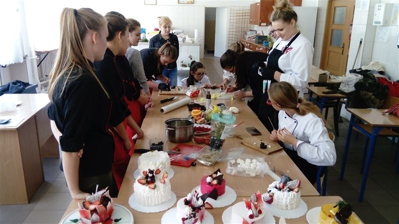 W ramach projektu unijnego „Zawodowcy na start”, uczniowie Technikum Żywienia i Usług Gastronomicznych w ZS RCKU Sochaczew zakończyli właśnie cykl zajęć praktycznych z cukiernictwa. Ich tematyka to: „Akademia czekolady”, „Torty i ciasta”, a także „Ozdabianie ciast i wypieki z ciasta francuskiego”. Każdy temat obejmował po 16 godzin zajęć praktycznych. Jest to o tyle ważne, że program nauczania w TŻiUG obejmuje mało treści z zakresu cukiernictwa.
