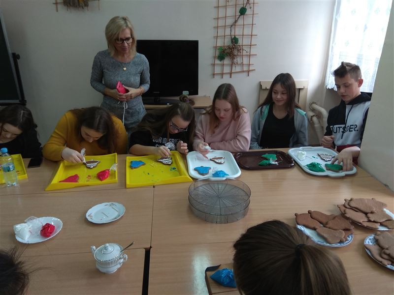 W świątecznej atmosferze ósmoklasiści, piekli pierniczki oraz dekorowali je lukrem. Warsztaty cieszyły się ogromnym zainteresowaniem Naszych gości.