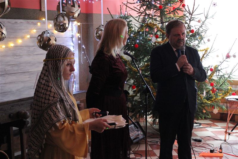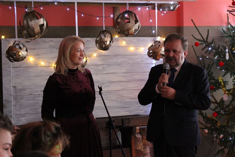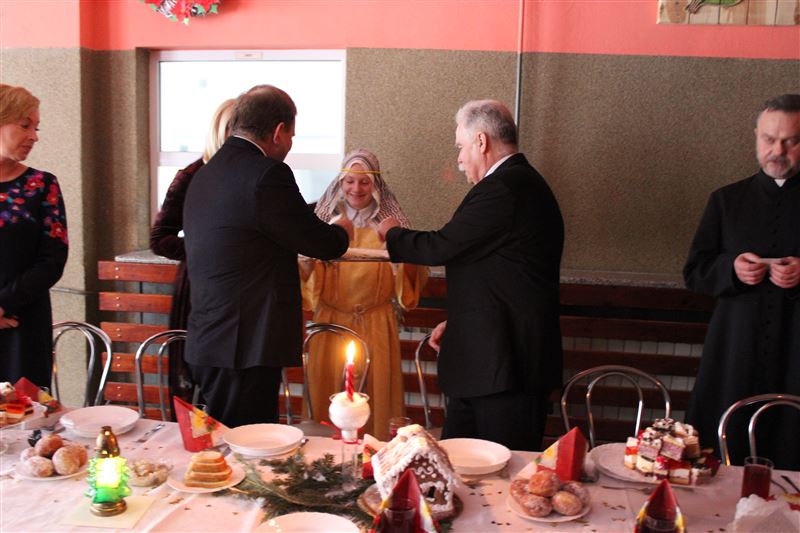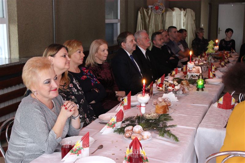 Po zakończeniu spektaklu głos zabrała dyrektor Agnieszka Ambroziak, która podziękowała artystom za wprowadzenie w klimat Świąt Bożego Narodzenia i złożyła wszystkim świąteczne życzenia. Do życzeń dołączyli się także zaproszeni goście, wicestarosta sochaczewski oraz dyrektor Domu Pomocy Społecznej w Młodzieszynie, którzy skierowali wiele ciepłych słów do naszych artystów. Następnie wszyscy podzielili się opłatkiem i zasiedli do wieczerzy wigilijnej.