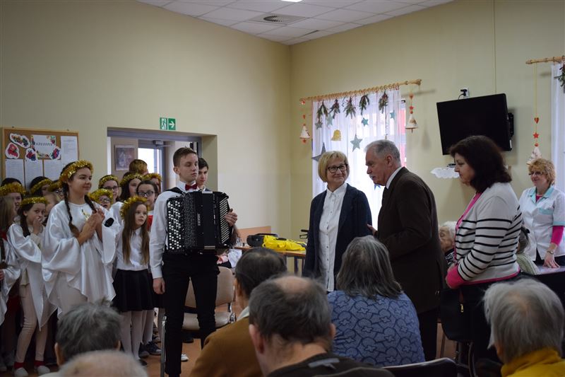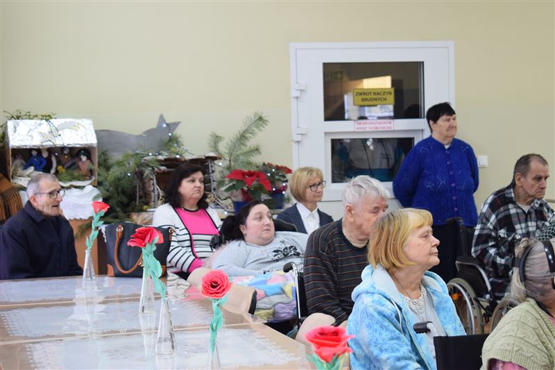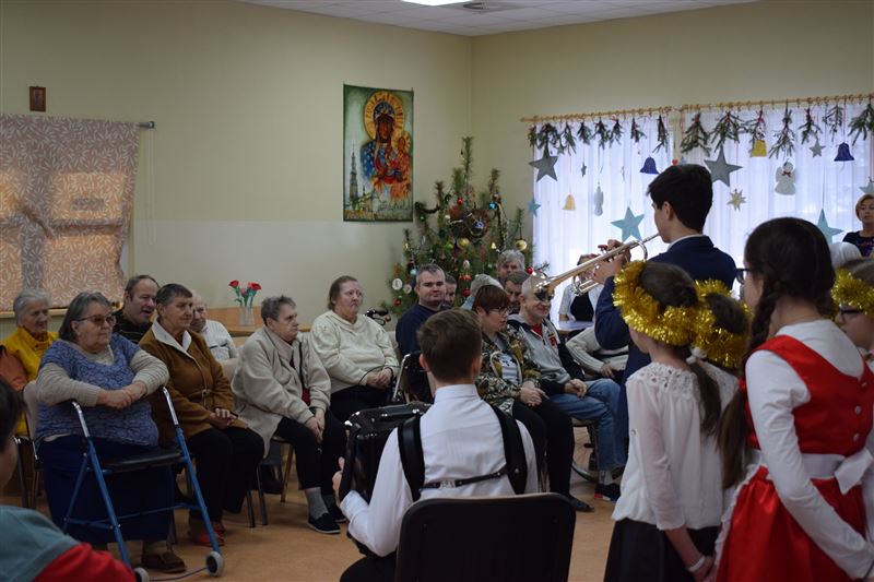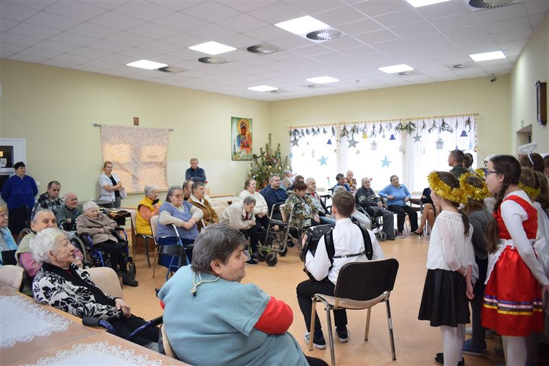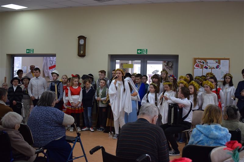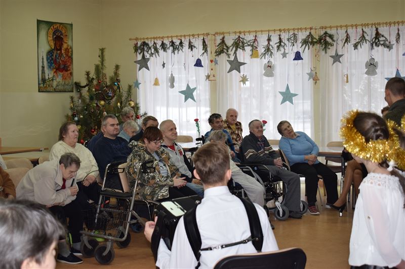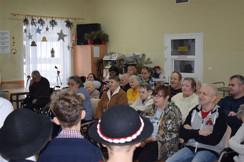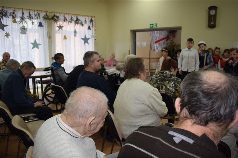 W tak zimowy dzień 8 stycznia br. Dom Pomocy Społecznej w Młodzieszynie odwiedziła młodzież ze Szkoły Podstawowej w Brzozowie, prezentując jasełka w wykonaniu najmłodszych. Jasełka w nieco odmiennej od powszechnie znanej formy, co wzbudziło jeszcze większe zainteresowanie widowni. Podczas występu widać było głębokie zaangażowanie małych aktorów, które uwidoczniło się szczególnie w sposobie odtwarzania betlejemskich scen z życia Maryi i Józefa. Przygotowane stroje, przepiękne kolędy i podniosła atmosfera, wszystko to razem sprawiło, że powstała Bożonarodzeniowa atmosfera. Bezpośrednio po przedstawieniu jasełkowym zostaliśmy obdarowani przepięknymi życzeniami na ten Nowy Rok jak i smacznymi jabłuszkami, za co serdecznie dziękujemy.