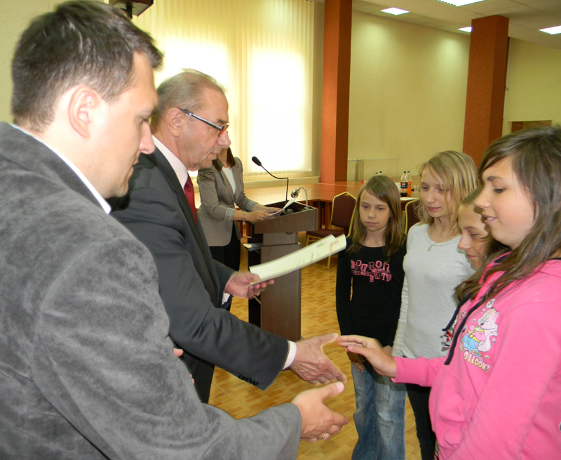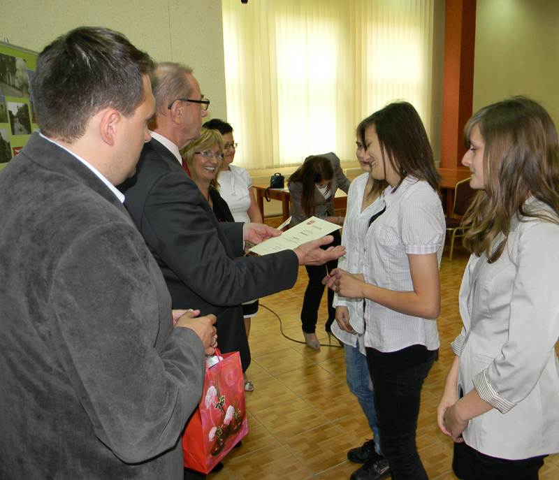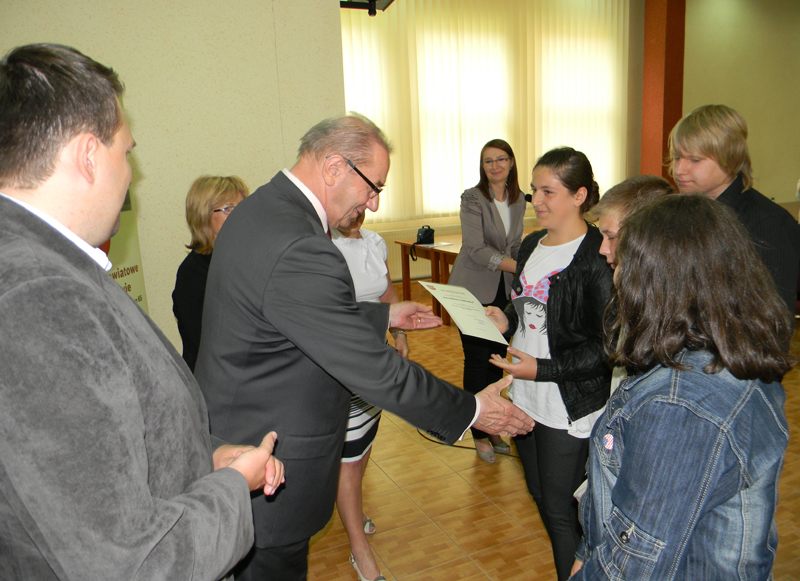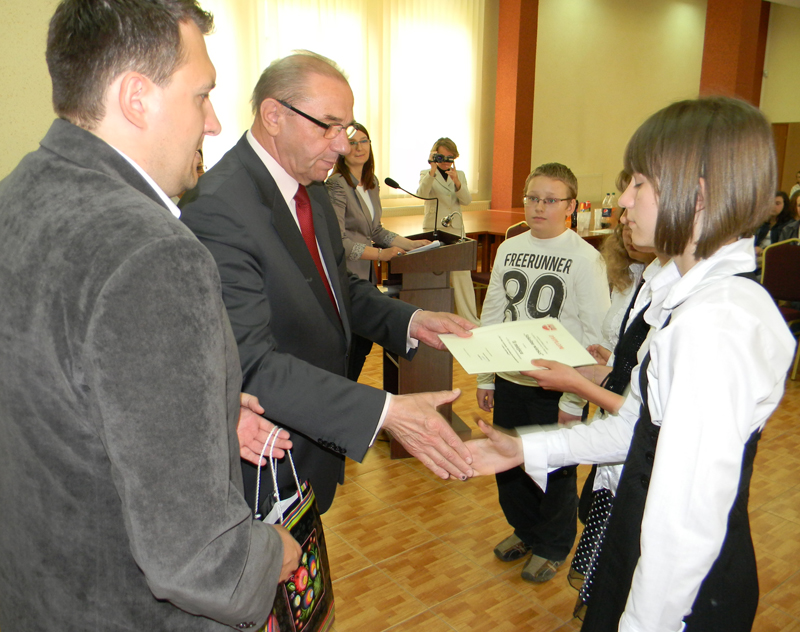 A nagrody i wyróżnienia zarówno młodym laureatom konkursu, jak i podziękowania dla opiekunów szkolnych gazetek za wsparcie i opiekę nad rozwojem talentów dziennikarskich swych uczniów wręczali starosta Tadeusz Koryś, dyrektor Wydziału Promocji, Kultury, Sportu i Turystyki Marcin Podsędek a także naczelnik Wydziału Edukacji Urzędu Miasta Beata Okraska-Ćwiek oraz sekretarz Urzędu Gminy w Młodzieszynie Zofia Fabisiak.