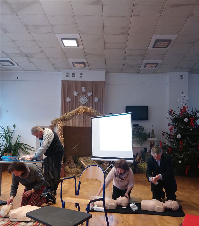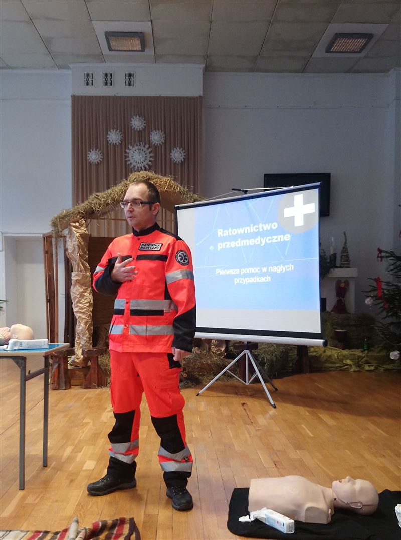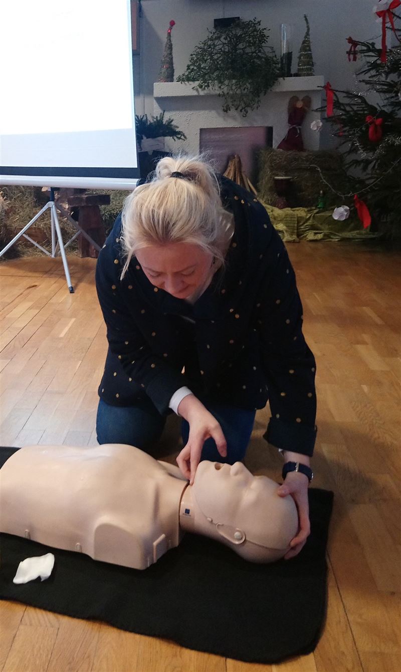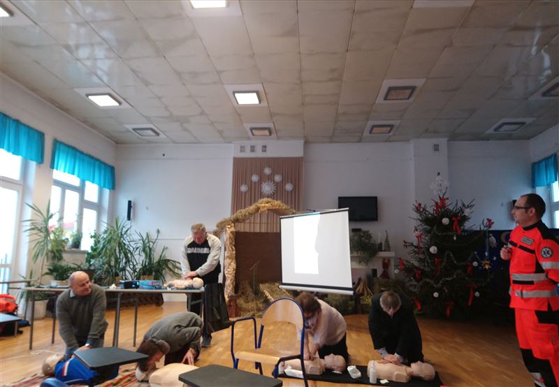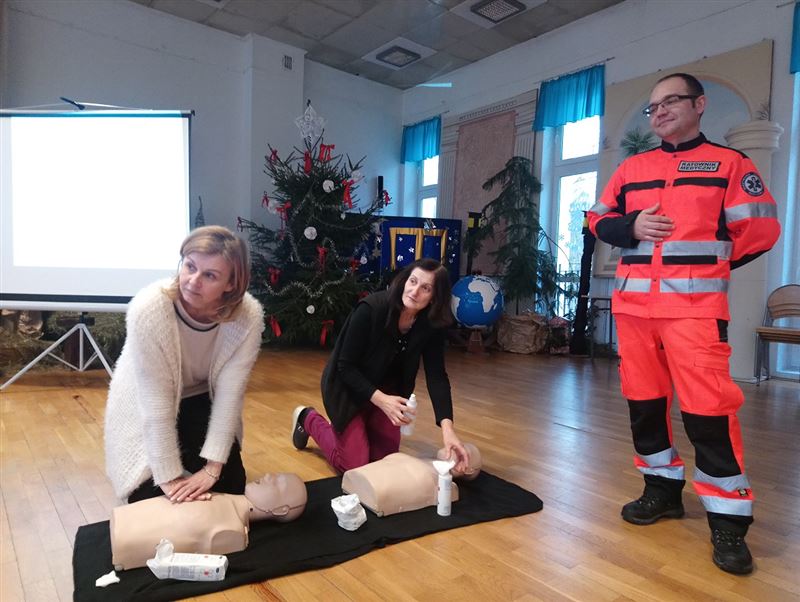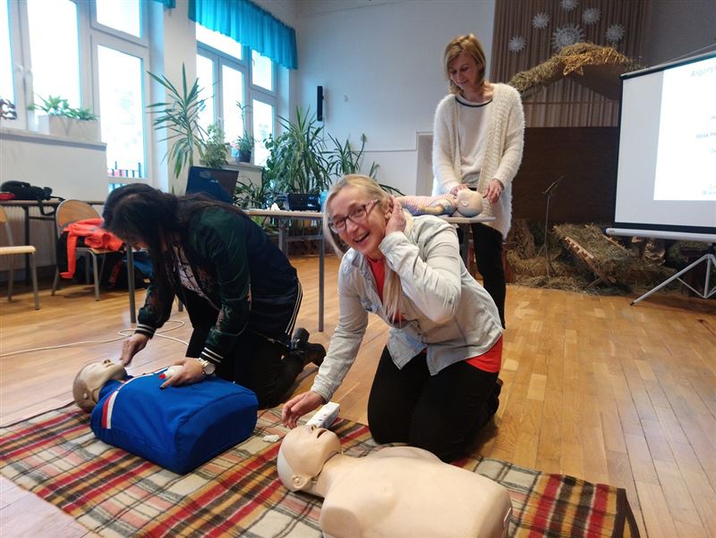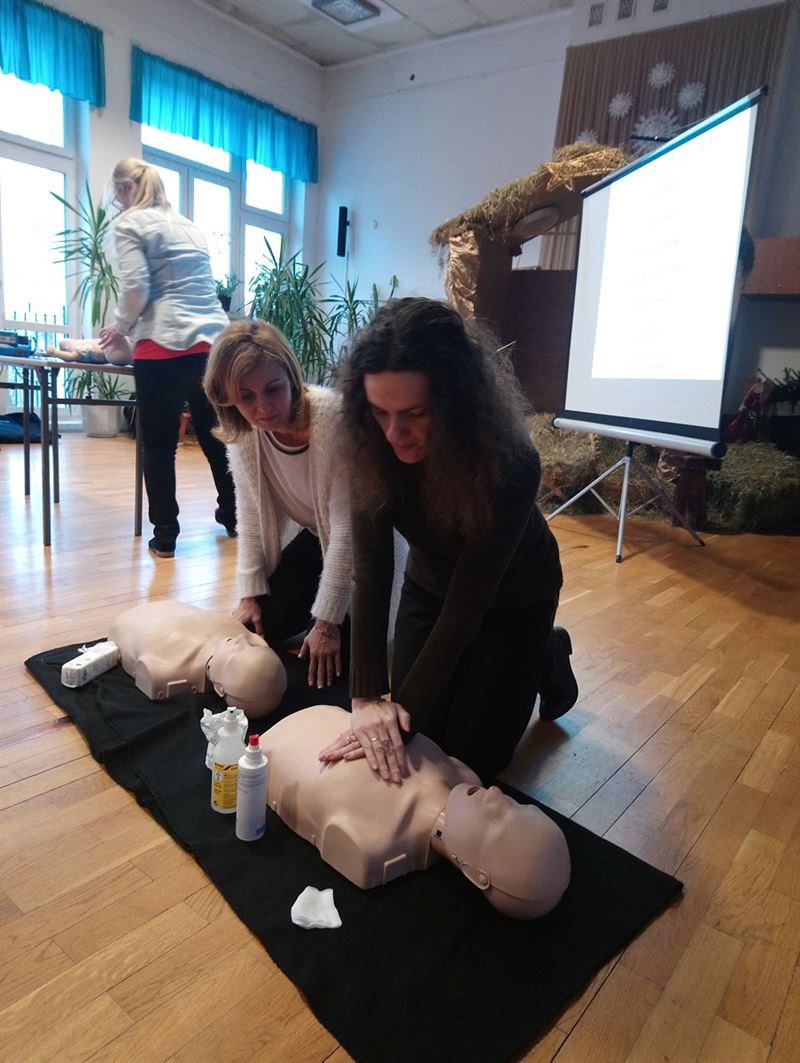 O tym, jak ważna jest znajomość zasad udzielania pierwszej pomocy przedmedycznej mówić nie trzeba. Wiedzą o tym nauczyciele i pracownicy Zespołu Szkół im. Stefana Kardynała Wyszyńskiego w Teresinie. Cała kadra szkoły, na czele z dyrektor szkoły Ewą Odolczyk wzięła udział w szkoleniu dotyczącym przedmiotowej sprawy. Teoria, a co najważniejsze praktyka zostały przećwiczone, zatem można rzec, w szkole jest bezpieczniej, jeśli chodzi o udzielanie pomocy w ewentualnych wypadkach. Oby jednak nabyta bądź uzupełniona wiedza, raczej nie miała okazji się przydać. Celem zajęć było przygotowanie do udzielania pomocy osobom poszkodowanym w sytuacji zagrożenia zdrowia lub życia w miejscu zdarzenia m.in. z wykorzystaniem defibrylatora.