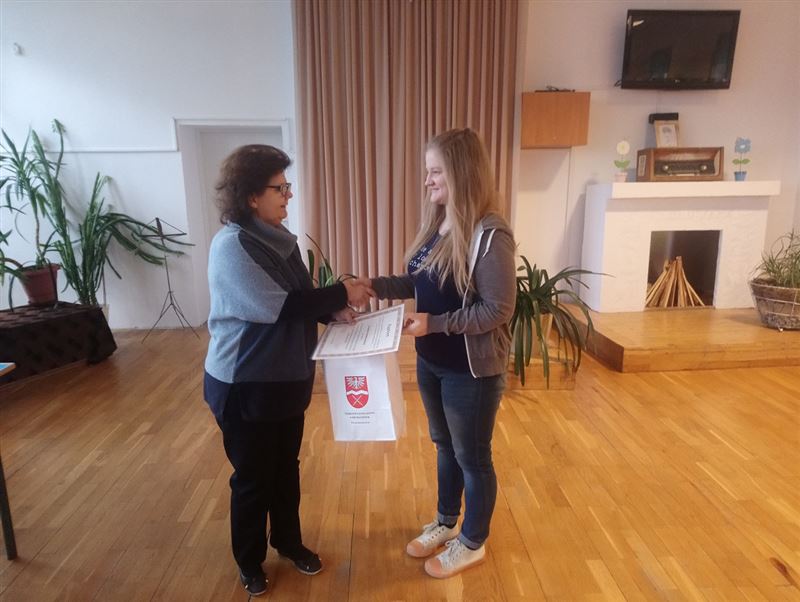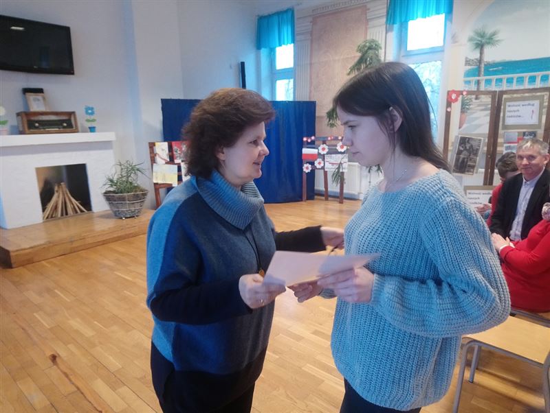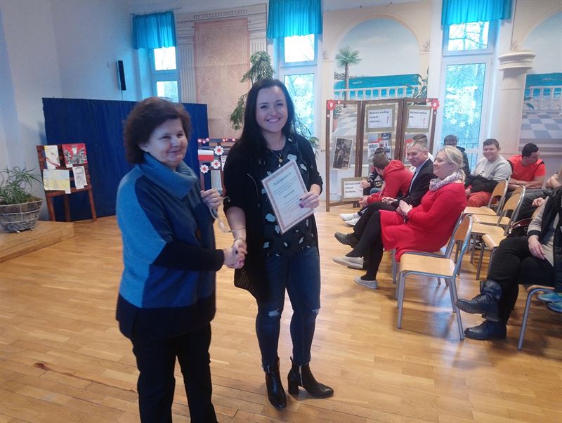 W środę 23 stycznia br. dyrektor Ewa Odolczyk na specjalnym apelu szkolnym przedstawiła klasyfikację za I semestr, pogratulowała najlepszym uczniom, zapoznała zebranych ze stanem czytelnictwa i frekwencją poszczególnych klas. Nagrodziła klasy III TL i III TK mające najlepszą frekwencję. Wyróżniła najlepszych czytelników. Przypomniała, ze nasza szkoła otrzymała książki zakupione z Narodowego Programu Rozwoju Czytelnictwa i zachęcała do odwiedzenia biblioteki szkolnej i wypożyczenia książek na okres ferii. Pogratulowała Darii Rozmarynowskiej zdobycia III miejsca w Powiatowym Konkursie Czytelniczym „ KOLEJ na czytanie”, zachęcała do wzięcia udziału w konkursach z nagrodami organizowanych w bibliotece szkolnej między innymi „Tę książkę warto przeczytać” i „ Najlepszy czytelnik w szkole”. Pani dyrektor przypomniała o projektach unijnych, w których bierze udział nasza szkoła. Wręczyła nagrody i podziękowania dla uczennic Darii Rozmarynowskiej zdobywczyni I miejsca w Powiatowym konkursie kolęd i pastorałek w języku angielskim i Paulinie Gołębiowskiej. Na zakończenie pani dyrektor złożyła szczególne podziękowania pani Dominice Kubiak - Szczudło za przygotowanie uczennic do konkursu i piękną oprawę muzyczną w czasie szkolnych przedstawień. Tego dnia odbyło się także zebranie z rodzicami, na którym pani dyrektor przedstawiła wyniki klasyfikacji za I semestr, frekwencję i czytelnictwo w poszczególnych klasach. Wymieniła najlepszych uczniów, czytelników, osoby ze stuprocentową frekwencją, aktywnie udzielające się w wolontariacie, Samorządzie Uczniowskim, najlepszych sportowców i laureatów konkursów. Szczegółowo omówiła projekty unijne, w których biorą udział nasi uczniowie: ZAWODOWCY NA START, ERASMUS+, PROJEKT SGGW - AKADEMIA PRZEDSIĘBIORCZOŚCI. Projekty umożliwiają uczniom uzyskanie i uzupełnienie wiedzy i umiejętności oraz kwalifikacji zawodowych. Uczestnicy biorą udział w stażach zawodowych, warsztatach, kursach, wyjazdach edukacyjnych, zajęciach w szkole wyższej i laboratoriach. Zachęcała rodziców do skorzystania z bogatej oferty biblioteki szkolnej wzbogaconej o pozycje zakupione z Narodowego Programu Rozwoju Czytelnictwa. Biblioteka otwarta jest także w czasie zebrań i dni otwartych. Pani dyrektor przypomniała jak ogromny wpływ ma czytelnictwo na rozwój młodzieży. Przy czytaniu musimy myśleć. Włączamy naszą wyobraźnię, pobudzamy kreatywność, wzbogacamy słownictwo, poprawiamy interpunkcję i ortografię. Zagłębianie się w treść książek jest zatem przyjemne i pożyteczne. W bibliotece szkolnej znajduje się mnóstwo ciekawych i porywających opowieści, które zadowolą nawet bardzo wymagającego czytelnika. Na zakończenie pani dyrektor wręczyła dyplomy i podziękowania dla rodziców za ogromne zaangażowanie w pracę szkoły i poświecenie prywatnego czasu. Następnie odbyły się spotkania z wychowawcami wszystkich klas.