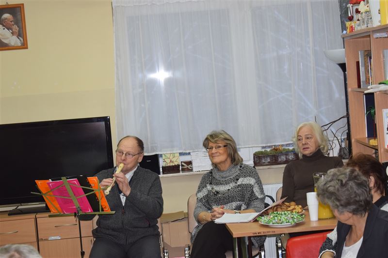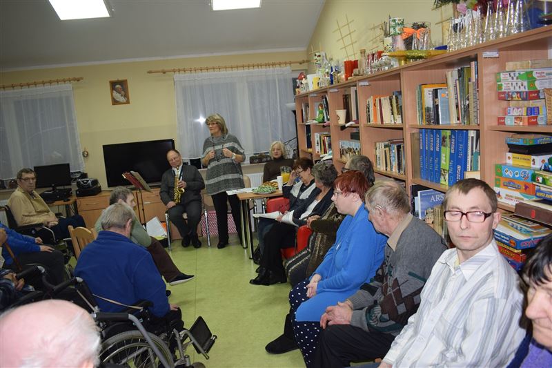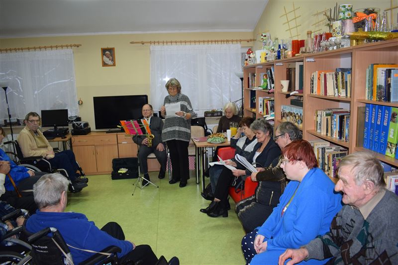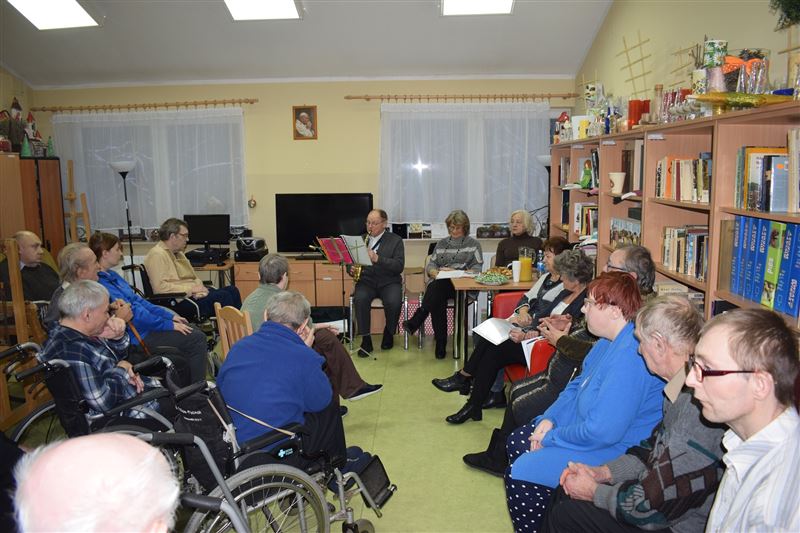 W Domu Pomocy Społecznej w Młodzieszynie, w piątek 25 stycznia br. odbyło się niezwykłe spotkanie z grupą literacką ze Stowarzyszenia Sochaczewskie Wieczory Literackie „ATUT” z Sochaczewa z jej prezesem Stanisławą Podgórską na czele. W kameralnej sali w „pokoju dziennym” mieszkańcy DPS-u wysłuchali poezji o różnorodnej tematyce. Wiersze były czasem melancholijne, czasem radosne, smutne a nawet żartobliwe. Poezja czytana przez ich autorów, była bardzo poruszającym przeżyciem dla mieszkańców. Była też część muzyczna tego spotkania. Jeden z autorów grał na saksofonie altowym różne standardy muzyczne. Te znane i nieznane. Na zakończenie zachęcona klimatem spotkania, jedna z mieszkanek wyrecytowała kilka wierszy, ku zaskoczeniu wszystkich mieszkańców i zaproszonych gości. Otrzymała pochwałę od przybyłych gości i gromkie brawa od wszystkich. Mieszkańcy byli wzruszeni spotkaniem, niektóre utwory przypominały im dawne wzruszające chwile z ich życia. Spotkanie zakończyliśmy wspólnym odśpiewaniem piosenki.