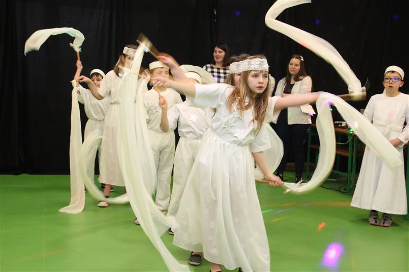 „I balony lecą w górę (…), jest karnawał, dzieci tańczą, gra muzyka przebierańcom!” – to cytat z wiersza, wyrecytowanego w karnawałowym konkursie „Moje 5 minut” w Zespole Szkół w Erminowie, podczas którego uczniowie przedstawiają najrozmaitsze występy, wszelakiego rodzaju. W tym roku, jak już wiemy, recytowano wiersze, ale także prezentowano sztuczki magiczne, pokaz gimnastyczny, tańce i śpiew. Ten konkurs jest tradycyjnie stałym punktem programu podczas naszych zabaw karnawałowych. Podobnie jak maskarada, chociaż dziś przebrało się wyjątkowo dużo osób – i to – uwaga! – nie tylko uczniowie! Bawiliśmy się wspaniale!