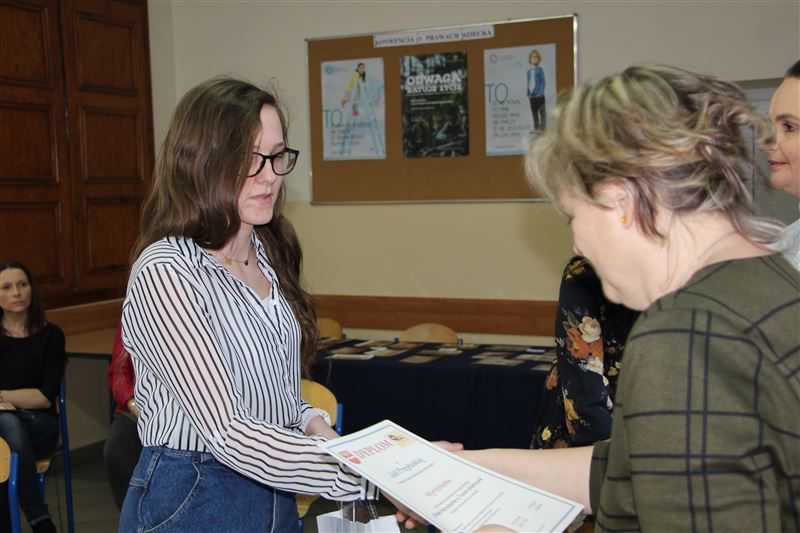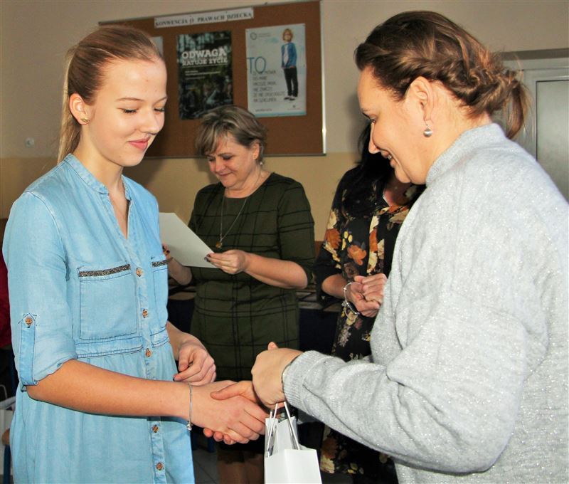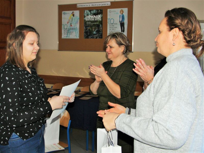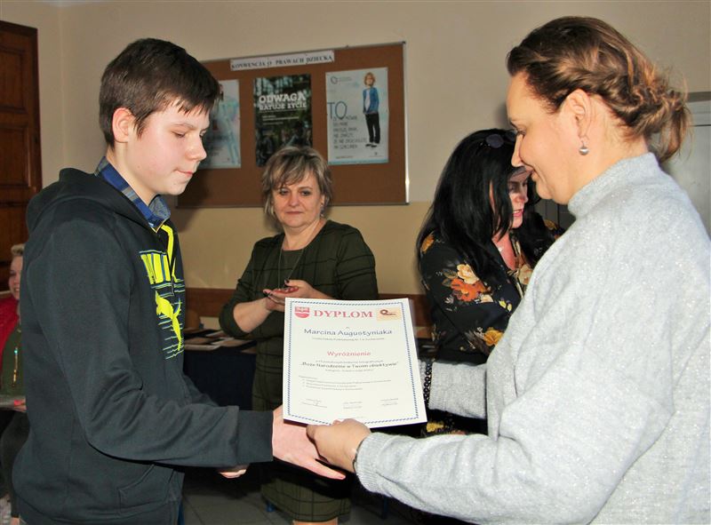 Rozstrzygnięcie konkursu odbyło się w miniony piątek, 22 lutego, tradycyjnie w szkolnej świetlicy ZS CKP. Nagrody zwycięzcom wręczały: Urszula Opasiak, dyrektor Powiatowego Zespołu Edukacji i Julia Jakubowska, dyrektor ZS CKP. Dyrektor szkoły gratulując nagrodzonym, zachęcała szczególnie uczniów szkół podstawowych i klas gimnazjalnych do przyjrzenia się ofercie edukacyjnej 80-tki, bo jak pokazuje ten konkurs szkoła nie tylko uczy, ale też stwarza możliwości do rozwijania swoich pasji i zainteresowań w różnych dziedzinach. Z kolei U. Opasiak skierowała podziękowania do opiekunów i nauczycieli, którzy rozwijają w swych uczniach pasje, zachęcając do udziału w wielu konkursach, które organizuje lub którym patronuje Starostwo Powiatowe w Sochaczewie.