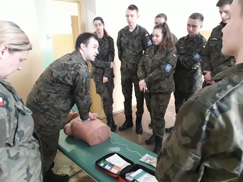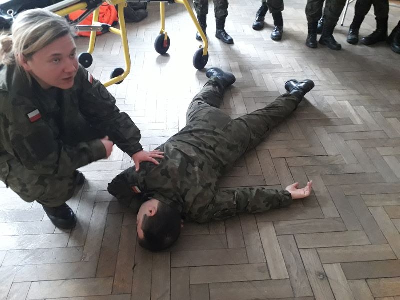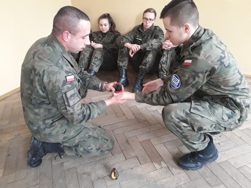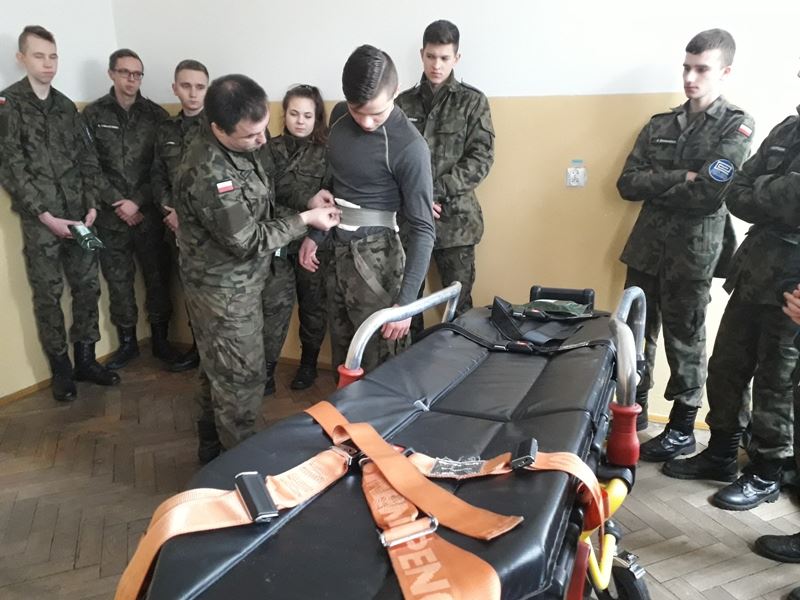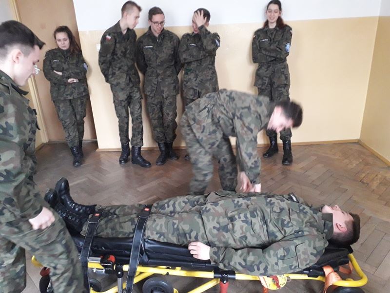 W połowie lutego br. odbył się poligon w 3. Warszawskiej Brygadzie Rakietowej Obrony Powietrznej w Bielicach. Uczniowie klasy 2B LO służb mundurowych uczestniczyli w zajęciach z pierwszej pomocy przedmedycznej na polu walki. Ważnym zagadnieniem tego tematu były zranienia, krwotoki, złamania i zwichnięcia. Nasi adepci uczyli się także opatrywać rany, stosować opaskę uciskową oraz dokonywać resuscytacji w sytuacjach ekstremalnych. Kolejnym etapem szkolenia była indywidualna ochrona żołnierza przed skażeniami chemicznymi, poprzez stosowanie odpowiednich preparatów. Ostatnim tematem była budowa i przeznaczenie granatów ręcznych typu Re42 i F1. Każdy z uczniów miał możliwość odbezpieczenia granatu ćwiczebnego i zastosowania go na polu walki.