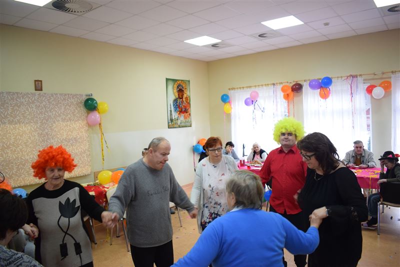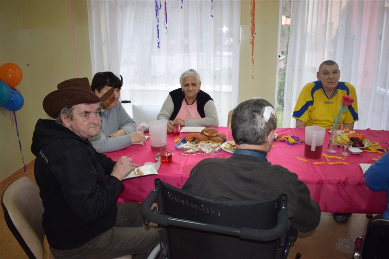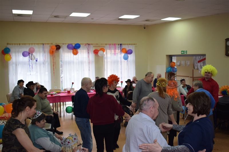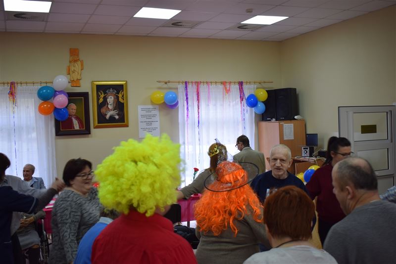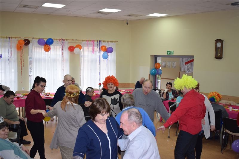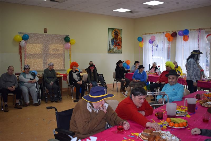 We wtorek, 5 marca br. w Domu Pomocy Społecznej odbył się Bal Ostatkowy. Mieszkańcy wspólnie z pracownikami przygotowywali dekoracje karnawałowe, mogli wykazać się swoimi umiejętnościami dekoratorskimi, ale przede wszystkim fantazją. Radość i zaangażowanie udzieliła się wszystkim mieszkańcom. Rytmiczna muzyka i kolorowy wystrój sali pobudzał do zabawy. Tańce i śpiew można było usłyszeć z oddali. Kolorowe maski, peruki wzbudzały uśmiech osób zgromadzonych. Ostatki to również faworki i inne słodkie przyjemności, których oczywiście nie zabrakło na stołach. Wesołą zabawą Mieszkańcy Domu zakończyli tegoroczny Karnawałowy.