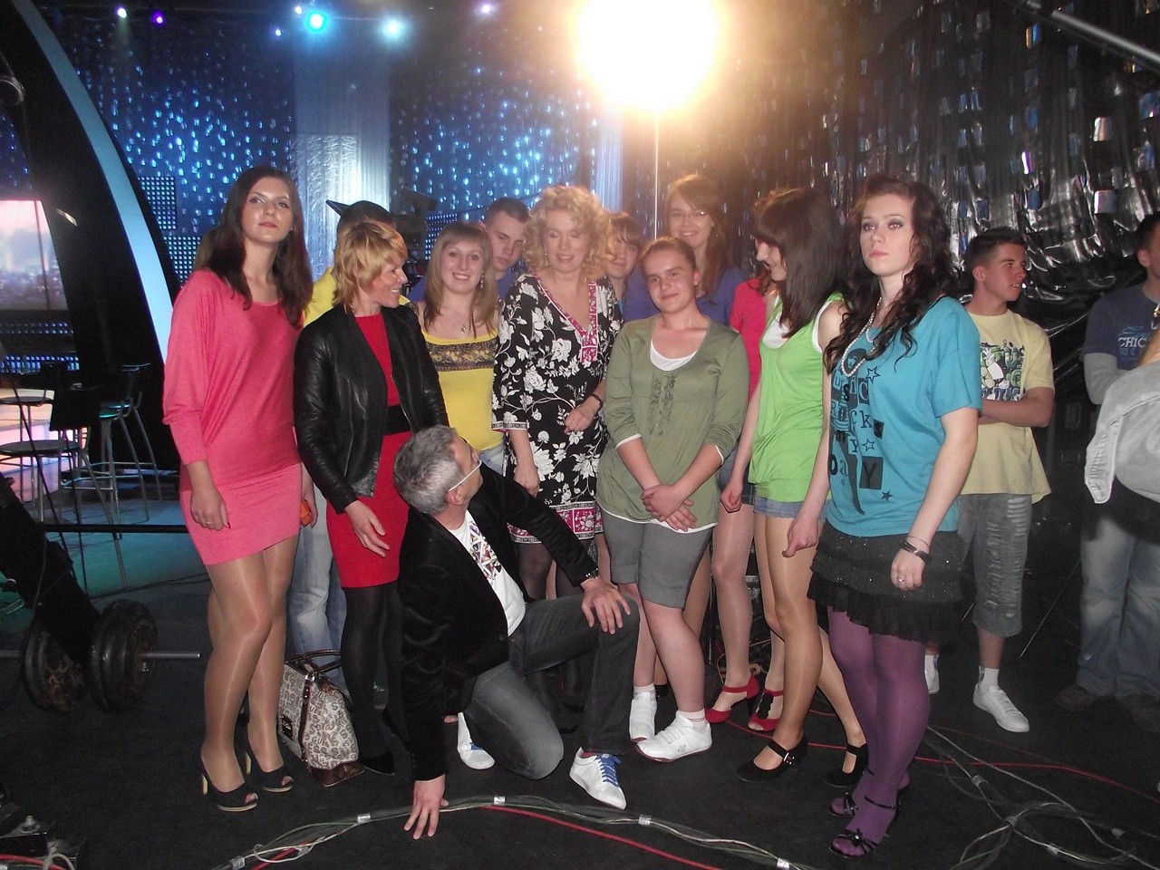Jeśli chodzi o nagranie programu rola publiczności, wbrew pozorom, również nie jest łatwa, trzeba po pierwsze wyglądać - mini obowiązkowe, spodnie absolutnie zakazane, poza tym preferowane kolory odblaskowe. Dzięki zapobiegliwości jednej z opiekunek uczniów A. Bargieł, która przywiozła wymaganą garderobą w torbie, niektóre dziewczyny zdążyły przed nagraniem przebrać się i spełniały oczekiwania. Po drugie, trzeba rytmicznie klaskać i kołysać się..., po trzecie uśmiechać się, czyli po prostu dobrze się bawić, w końcu nie jest to program dla smutasów! Zapewniam, że kulisy nagrania są jeszcze ciekawsze niż to, co oglądamy na wizji, artyści też mają ściągawki, po które chętnie sięgają. Bliski kontakt z gwiazdami ekranu mocno zelektryzował niektóre dziewczyny!