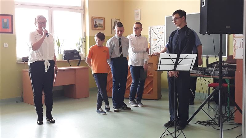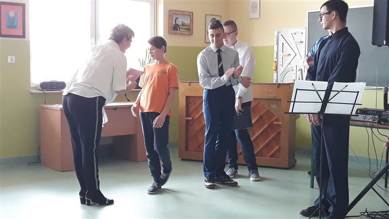 Na zakończenie pani Dyrektor Renata Karaś wręczyła uczniowi klasy IV Marcinowi Mika stypendium Starosty Sochaczewskiego za wysokie osiągnięcia w nauce w I półroczu 2018\2019.
