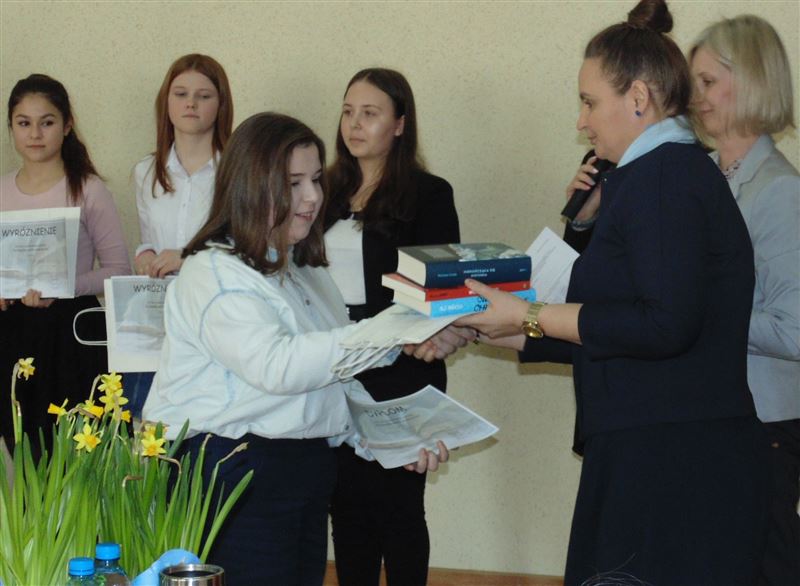 Jury w składzie: Barbara Sobkowicz, Katarzyna Majchrzak, Anna Syperek - Powiatowy Zespół Edukacji w Sochaczewie, Ewelina Daniłowicz z Poradni Psychologiczno-Pedagogiczna w Sochaczewie, zwracając uwagę na poprawność językową, intonację i oryginalność występów, zdecydowało przyznać nagrody za 1, II i III miejsce oraz wyróżnienia. Nagrody w konkursie literackim ufundowało Starostwo Powiatowe w Sochaczewie, wśród uczestników rozlosowano także karnety na basen oraz bilety do kina.
