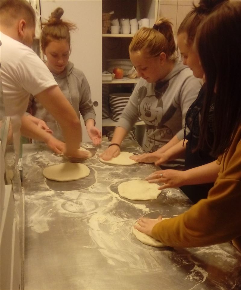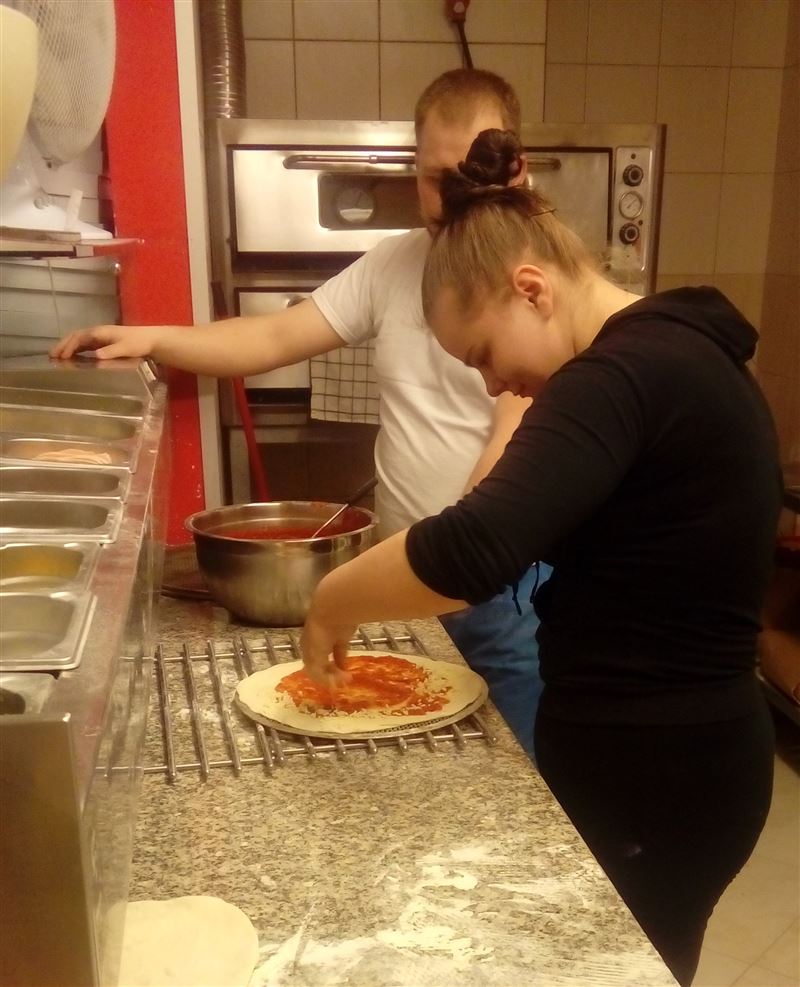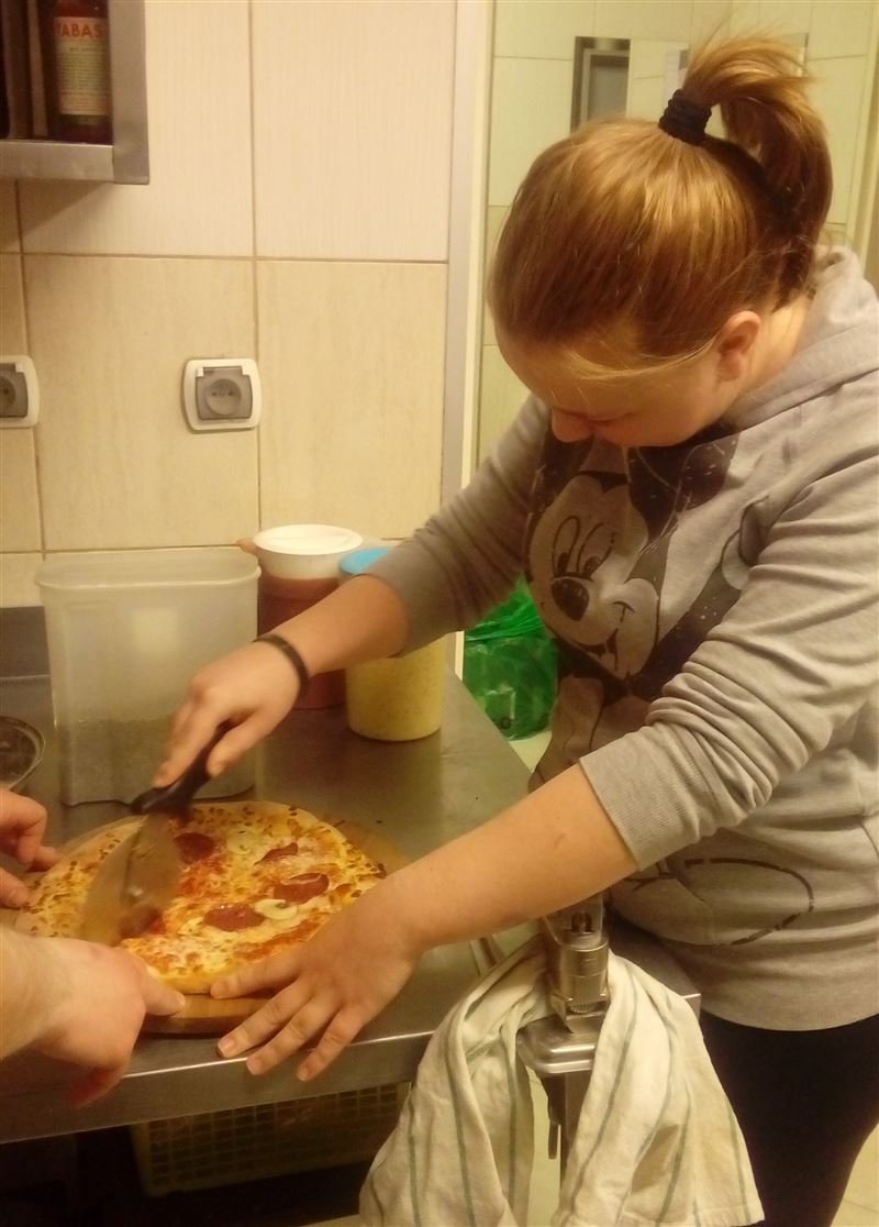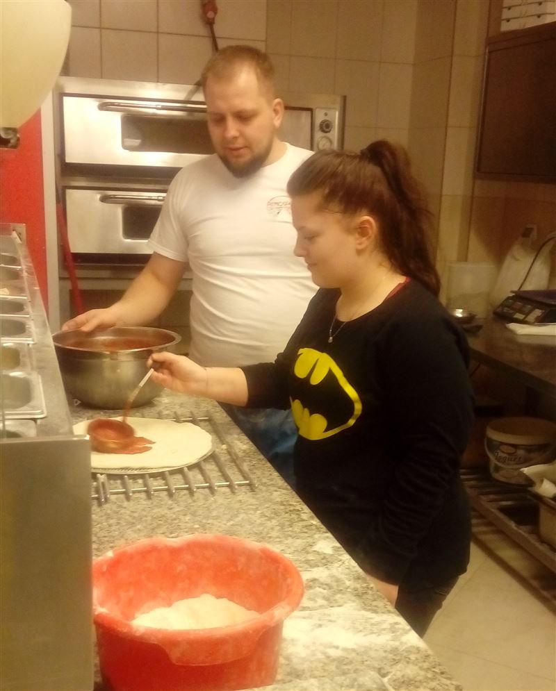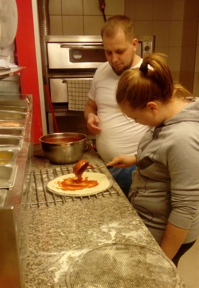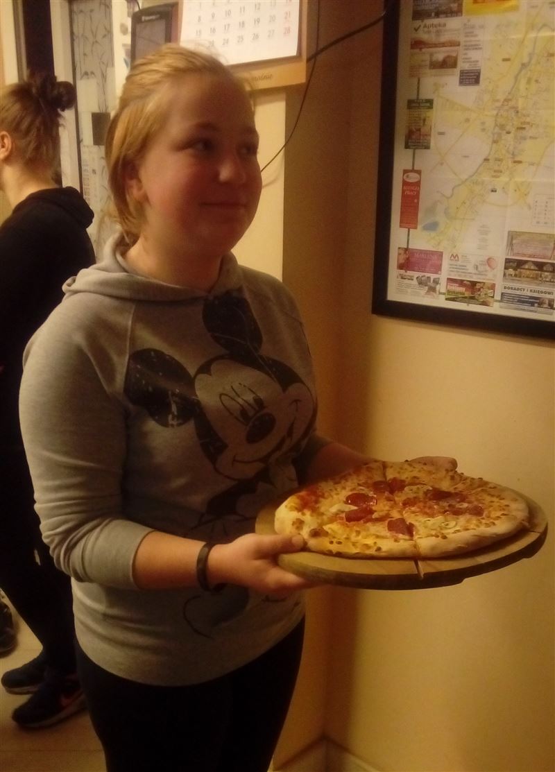 Dziewczęta miały możliwość skorzystania z uprzejmości właścicielki pizzerii Marii Wojno, aby osobiście zapoznać się ze specyfiką zawodu kucharza/kelnerki oraz dowiedzieć się jak odbywa się prowadzenie własnej pizzerii.