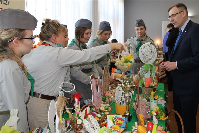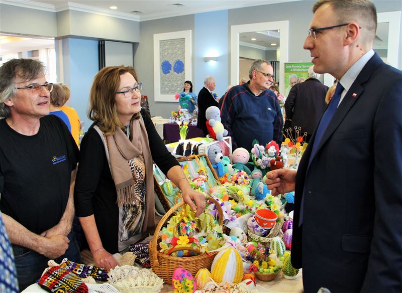 Po godzinie 13.00 palemki, koszyczki i całe stoiska poświęcił o. Sebastian Bielski z parafii w Niepokalanowie. Twórcom i artystom ludowym oraz licznie przybyłym zwiedzającym za udział w kiermaszu podziękowała starosta sochaczewski Jolanta Gonta, która podkreślała potrzebę kultywowania i utrwalania polskich tradycji i zwyczajów związanych z nadchodzącym świątecznym czasem.