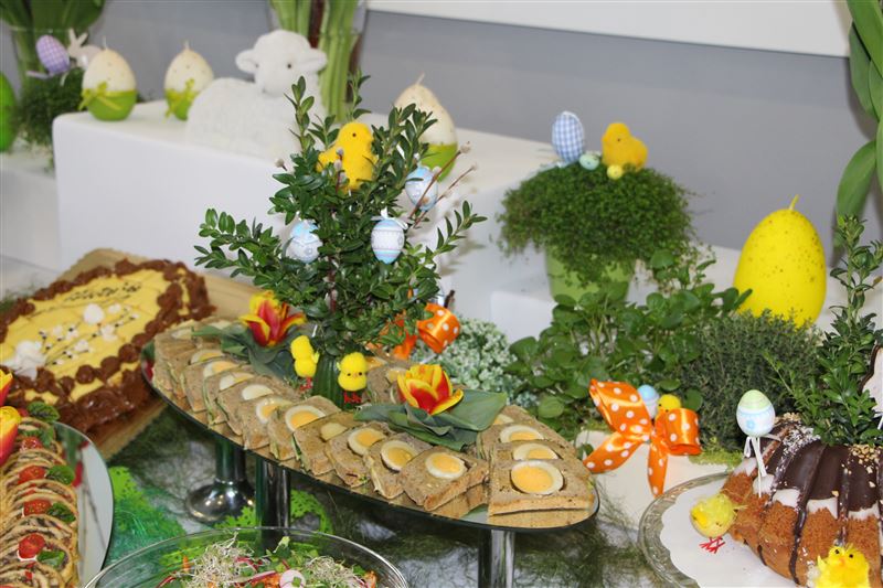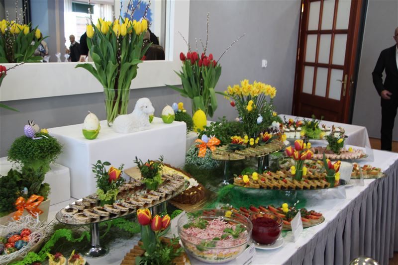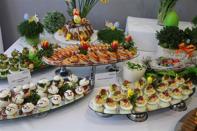 Specjalnie przygotowany przez kuchnię „Chabrowego Dworku” stół zawierał potrawy regionalne i tradycyjne, można było skosztować m.in. indyka faszerowanego, szynkę wędzoną z jajkiem w galarecie czy parzoną w soku z pomarańczy, był też schab pieczony, pasztety, sałatki i jajka - w kilku odsłonach a także ciasta, w tym babki, serniki i mazurki.