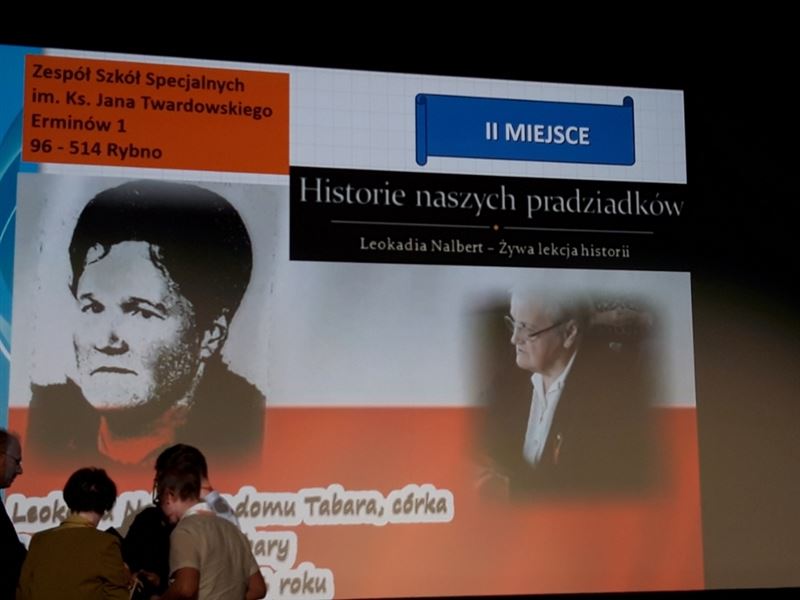 W ramach tego niezwykle interesującego przedsięwzięcia 11 marca zorganizowaliśmy w szkole spotkanie z kombatantką II wojny światowej - panią Leokadią Nalbert, mieszkanką gminy Rybno oraz uczennicą Szkoły Podstawowej w Erminowie. Owocem tego wydarzenia był stworzony przez naszych uczniów, pod opieką pani Agnieszki Grabarek i pani Moniki Sobala, film „Historie naszych pradziadków. Leokadia Nalbert – Żywa lekcja historii”.