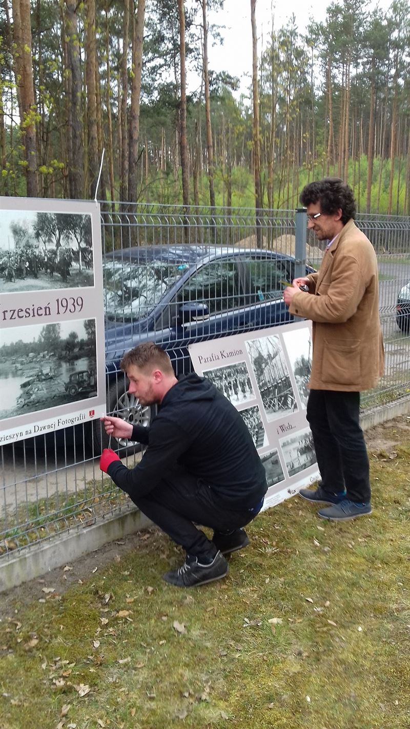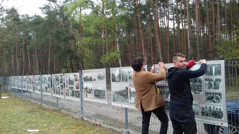 Pierwsze momenty montażu wystawy na ogrodzeniu, wywołało spore zainteresowanie wśród oglądających którzy rozpoznali swoich znajomych.