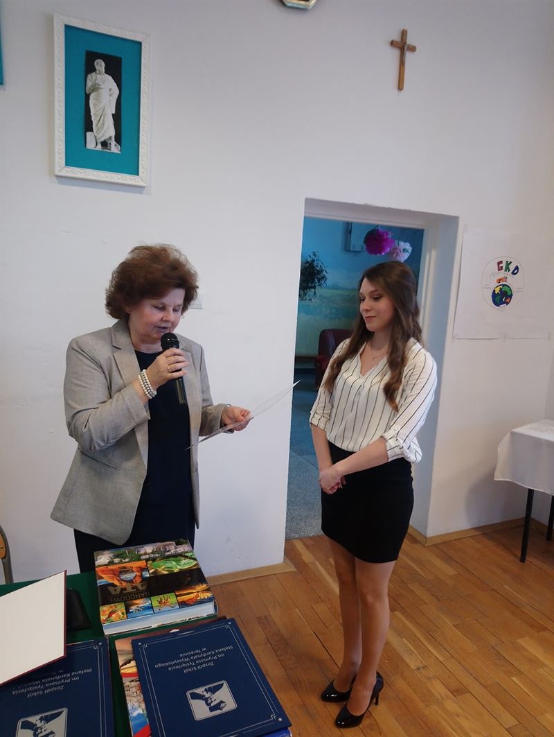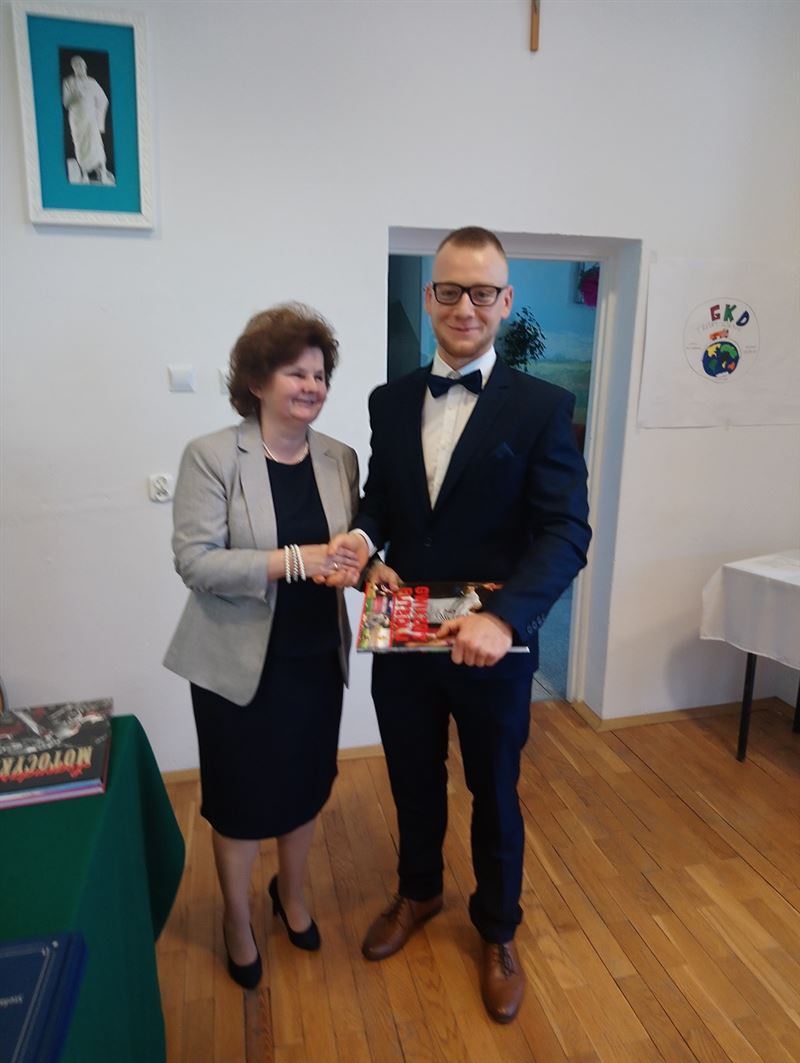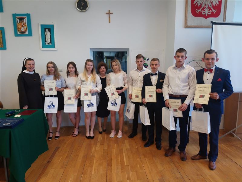 W piątek, 26 kwietnia br. w Zespole Szkół w Teresinie pożegnaliśmy klasy maturalne. Dyrektor Ewa Odolczyk wręczyła nagrody absolwentom, którzy osiągnęli najlepsze wyniki w nauce. Nagrody otrzymali także laureaci konkursów szkolnych, poczet sztandarowy, najlepsi czytelnicy, sportowcy, artyści oraz uczniowie angażujący się w sprawy szkoły, działalność Samorządu Uczniowskiego i wolontariatu. Absolwenci podziękowali pani dyrektor, swoim wychowawcom i całej Radzie Pedagogicznej za trud włożony w nauczanie i wychowanie. Dyrektor szkoły życzyła młodzieży wielu sukcesów w dalszym dorosłym życiu i najlepszych wyników na maturze, podziękowała także rodzicom za ogromne zaangażowanie na rzecz szkoły. Podczas uroczystości obecny był Ernest Dobrzyński HR Manager w MFO - firmie współpracującej ze szkołą, który dostarczył też ciekawy upominek dla szkoły.