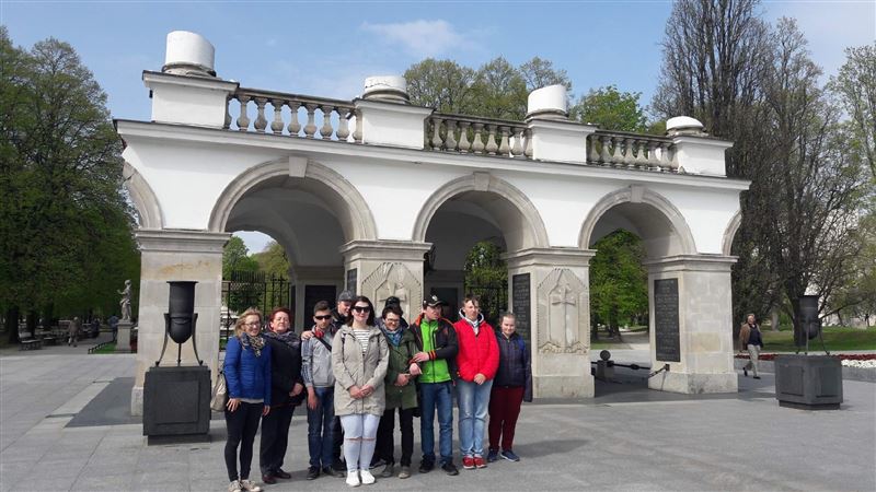 Z końcem kwietnia uczniowie z Zespołu Szkół w Erminowie odbyli edukacyjny spacer szlakiem Józefa Piłsudskiego po Warszawie. Przewodnikiem była Pani Maria Pawlak z Muzeum Józefa Piłsudskiego w Sulejówku. Spacer rozpoczęliśmy od historycznego dworca kolejowego Warszawa Wiedeńska, położonego w pobliżu obecnego Dworca PKP Śródmieście. Do miejsca tego przybywał wielokrotnie Marszałek przebywając w Warszawie. Do następnego punktu spaceru bardzo sprawnie dostaliśmy się metrem, co było dużą atrakcją i dla wielu nowym doświadczeniem. Ruchome schody, oznakowanie metra, stacje metra - były elementem treningu społecznego. Uczniowie doskonale odnaleźli się w nowej sytuacji, wykazując spokój i zainteresowanie.