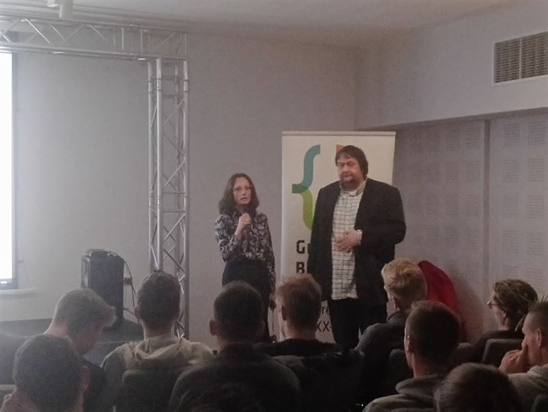 Uczniowie Zespołu Szkół w Teresinie wzięli udział w spotkaniu z Jarosławem Górskim, polonistą, kulturoznawcą, pisarzem, krytykiem literackim, autorem artykułów popularyzujących różne dziedziny sztuki. Spotkanie zorganizowane zostało przez panią Aleksandrę Starus dyrektor Gminnej Biblioteki Publicznej w Teresinie z okazji ustanowienia przez Sejm Rzeczypospolitej Polskiej roku 2019 Rokiem Gustawa Herlinga-Grudzińskiego. „Losy i twórczość Gustawa Herlinga-Grudzińskiego stanowią świadectwo cierpień i czynu człowieka, któremu przyszło przeżyć czasy totalitarnej przemocy i kryzysu wartości – czytamy w uchwale Sejmu. – Więzień sowieckiego łagru, żołnierz Armii Andersa, uczestnik Bitwy pod Monte Cassino, emigrant, współpracownik „Kultury” i Radia Wolna Europa, zaangażowany w pomoc polskiej opozycji antykomunistycznej, ale przede wszystkim ceniony w Ojczyźnie i świecie autor książki „Inny świat. Zapiski sowieckie”, poruszających opowiadań oraz „Dziennika pisanego nocą”. Uczniowie klas ITL, IITKL, IIITKLM z dyrektor Ewą Odolczyk i nauczycielkami Katarzyną Wróbel i Edytą Gałecką wzięli udział w poruszającej lekcji historii. W stulecie urodzin Gustawa Herlinga-Grudzińskiego uczniowie, którzy wśród obowiązkowych lektur czytają „Inny świat” tego autora, poznali ilustrowane zdjęciami, malarstwem, fragmentami literatury , bardzo szerokie konteksty ułatwiające zrozumienie książki: dzieje rosyjskiego systemu karnego, stalinowskich represji i systemu obozów pracy, czemu łagry służyły i kto w nich przebywał, jak Polacy znaleźli się w łagrach i jak część z nich (także Herlinga-Grudzińskiego) udało się stamtąd wydostać oraz jak wyglądało życie codzienne więźniów. Słuchacze dowiedzieli się, że społeczność więzień i łagrów była złożona z ludzi różnej narodowości, różnych grup społecznych i zawodowych. W większości to więźniowie polityczni, wśród nich byli Polacy, Gruzini, Uzbecy, Ukraińcy. Śledząc ich losy jednostkowe i zbiorowe, autor interesuje się problemem wpływu obozu na człowieka. Śledzi zwłaszcza utratę godności ludzkiej za sprawą wyniszczającej pracy i głodu. Niejednokrotnie zastanawia się do jakich czynów zdolny jest nieszczęśliwy, poniżany człowiek. Zadaje sobie pytanie, gdzie jest kres poniżenia, dno człowieczeństwa. Uważa, że nie ma prawa osądzać poniżonych, a potępiać należy tylko sprawców nędzy ludzkiej. W powieści „Inny świat‘’ pisarz broni prawa każdego człowieka do wolności oraz niezależnej od warunków moralności. Nikogo przy tym nie ocenia i nie osądza. Uczniowie z uwagą wysłuchali prelekcji Jarosława Górskiego niektórzy stwierdzili, że Gustaw Herling Grudziński opisuje tragedię w czasach przemocy i zaniku wyższych wartości i chętnie zgłębią poruszony w wykładzie temat czytając książki historyczne. Warto dodać, iż koordynatorką spotkania z ramienia ZS Teresin była Katarzyna Wróbel, szkolna bibliotekarka. Zapraszamy do zapoznania się z bogatą ofertą czytelniczą Gminnej Biblioteki Publicznej i naszej szkolnej biblioteki. Zachęcamy do czytania wszystkich, każdy znajdzie coś dla siebie.