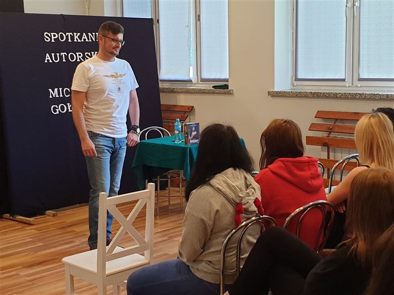 W ramach innowacji pedagogicznej „Wychowanie przez czytanie”, 31 maja 2019 r. w naszej Placówce (MOW Załusków) gościliśmy Michała Gołkowskiego - pisarza literatury fantastycznej, z zawodu lingwistę, pracującego jako tłumacz języka rosyjskiego i angielskiego. Jednak jego twórczość nie ogranicza się tylko do literatury fantastycznej. Panu Michałowi nie jest obca tematyka wojenna, historyczna czy dokumentalna. Zadebiutował w roku 2013 książką „Ołowiany świt”. Aktualnie na koncie posiada już 19 książek, a jego najnowsze „dziecko”, jak sam mówi o książce to „Świątynia na bagnach”, którą ze specjalną dedykacją otrzymaliśmy w prezencie.