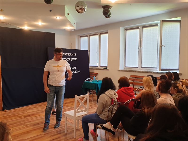 Podczas spotkania dziewczęta mogły dowiedzieć się o tajnikach powstania książek, pomysłów na nie, a także całego procesu wydawniczego. Pisarz z chęcią odpowiadał na wszelkie pytania zadawane przez wychowanki, a także przybliżył tematykę swoich książek. Opowiedział o pracy jako tłumacza oraz początkach swojej twórczości.