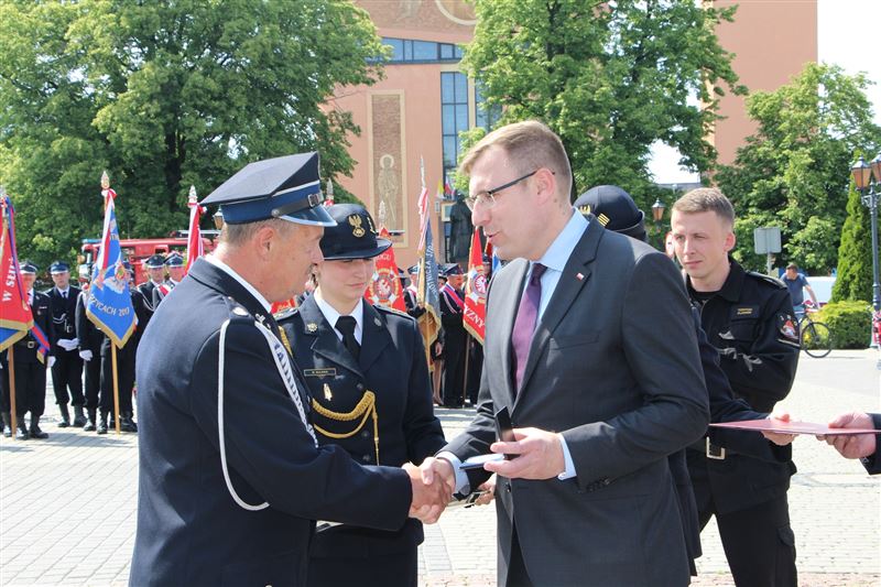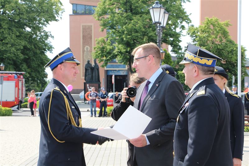 Ponadto, komendant Piątkowski w swoim wystąpieniu podkreślał bardzo dobrą współpracę z samorządami, zarówno w codziennych sprawach, jak i działaniach podejmowanych na rzecz poprawy bezpieczeństwa mieszkańców. Wspomniał tu m.in. o zakupie sprzętu czy pojazdów strażackich. Mówił także o planowanej przebudowie strażnicy przy ulicy Staszica, dziękując przy tym posłowi Maciejowi Małeckiemu za ogromne wsparcie przy realizacji tego zadania.