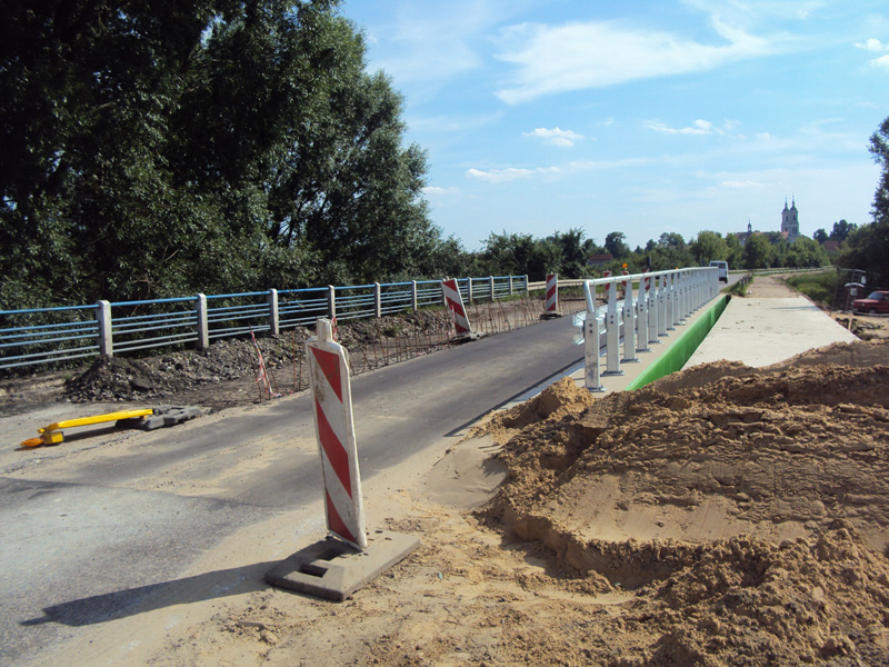 Obecnie na kładce przy moście jest już wykonane zbrojenie, w najbliższych dniach nastąpi betonowanie nawierzchni. Ruch odbywa się na moście wahadłowo. W ramach tej inwestycji wyremontowany zostanie również przepust pod drogą, wzdłuż ścieżki pieszo-rowerowej.