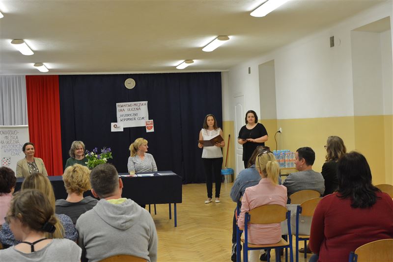 O godzinie 11.30, gdy dotarły już wszystkie drużyny i zostały podliczone punkty, wszyscy uczestnicy zebrali się w sali gimnastycznej, w której odbyło się ogłoszenie wyników i omówienie gry miejskiej. Triumfatorami została drużyna pracownicy ZS CKP, którą tworzyły panie Anna Bargieł, Alicja Bugaj, Katarzyna Durczak Kuźmińska i Agnieszka Siepka. Drugie miejsce zajęła drużyna uczniowie ZS CKP, w składzie pani Iwona Stachlewska (opiekun z ramienia Samorządu Szkolnego), Karolina Kucharska, Karol Siejka i Paulina Szyprowska, a trzecie miejsce zdobyła drużyna Uniwersytet Trzeciego Wieku, reprezentowana przez panie Mirosławę Czerniachowską, Małgorzatę Muśko, Izabelę Nalej i Jadwigę Urbaniak. Zwycięzcy otrzymali dyplomy i nagrody rzeczowe, ufundowane przez Starostwo Powiatowe, które wręczyła pani dyrektor Julia Jakubowska. Na koniec uroczystości pani dyrektor podziękowała pani wicedyrektor Lucynie Sobieraj i paniom Justynie Bednarek, Dorocie Golis, Grażynie Mroczkowskiej, Magdalenie Osińskiej, Iwonie Pakulskiej, Annie Świnoga i Magdalenie Szczepańskiej, które zainicjowały, zorganizowały i przeprowadziły Powiatowo – Miejską Grę Uliczną pod hasłem „Historyczny wspomnień czar”.