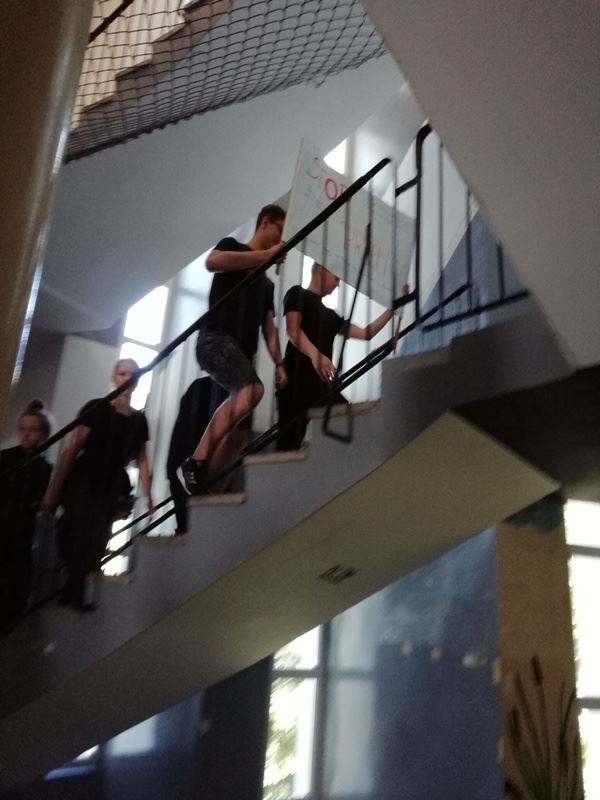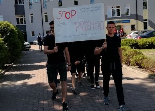 Z takim oto przesłaniem uczniowie klasy III TKLM wraz z wychowawcą klasy Dominiką Kubiak-Szczudło zorganizowali Marsz Przeciwko Przemocy Werbalnej. Wszyscy ubrani na czarno prezentowali transparent z hasłem o przemocy. Uczniowie maszerując korytarzami szkolnymi i przed szkołą dali przykład swoim rówieśnikom, że Przemocy należy mówić NIE! ponieważ przemoc słowna jest źródłem zachowań patologicznych.