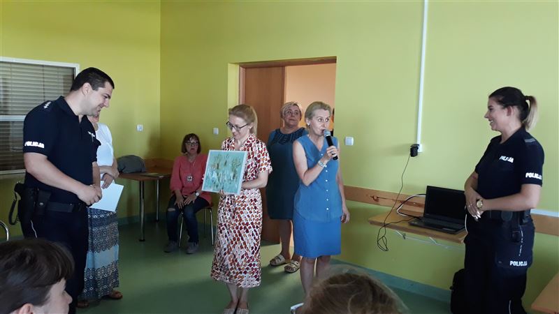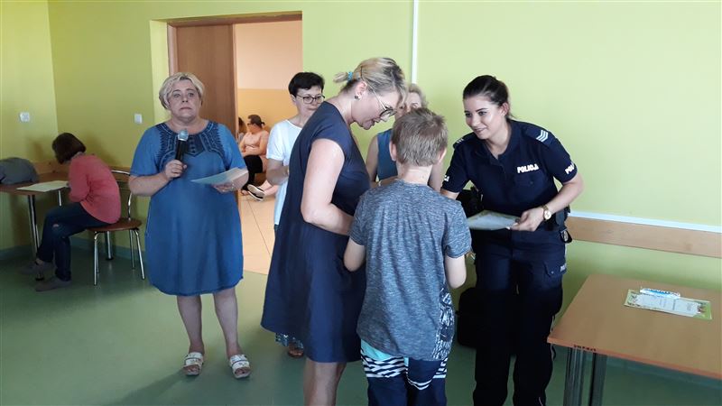 W trakcie spotkania rozstrzygnięto szkolny konkurs plastyczny ,,Bezpieczne wakacje”, a dyplomy i nagrody wręczyli zaproszeni goście.