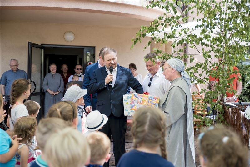 - W imieniu swoim, jak i całego Zarządu Powiatu w Sochaczewie na czele ze starostą życzymy, by wasze przedszkole zawsze cieszyło się uznaniem i szacunkiem środowiska, by zgodnie z przyjętą misją, dzieci pogłębiały więź z Bogiem, Rodziną i Ojczyzną, były wrażliwe na drugiego człowieka i rozwijały w sobie dobro, prawdę i piękno – mówił do zgromadzonych wicestarosta – Niech Święci Aniołowie Stróże zawsze czuwają nad całą społecznością Przedszkola Niepublicznego Diecezji Łowickiej w Sochaczewie – dodał wręczając na ręce s. Marii Ogłazy, dyrektor przedszkola, okolicznościowy grawer i upominek.