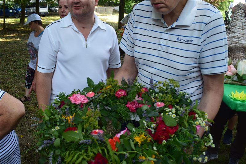 Tradycją jest puszczanie wianków na wodzie, mieszkańcy takowy przygotowali, który wziął udział w konkursie na ,, Najpiękniejszy Wianek”. Nasz wianuszek upleciony z liści paproci, jaśminu, róż, lawendy i wielu innych kwiatów oraz ziół rosnących wokół naszej placówki odniósł sukces i zajął III miejsce w konkursie. Z wielką radością odebraliśmy nagrodę, a później były tańce i śpiew.