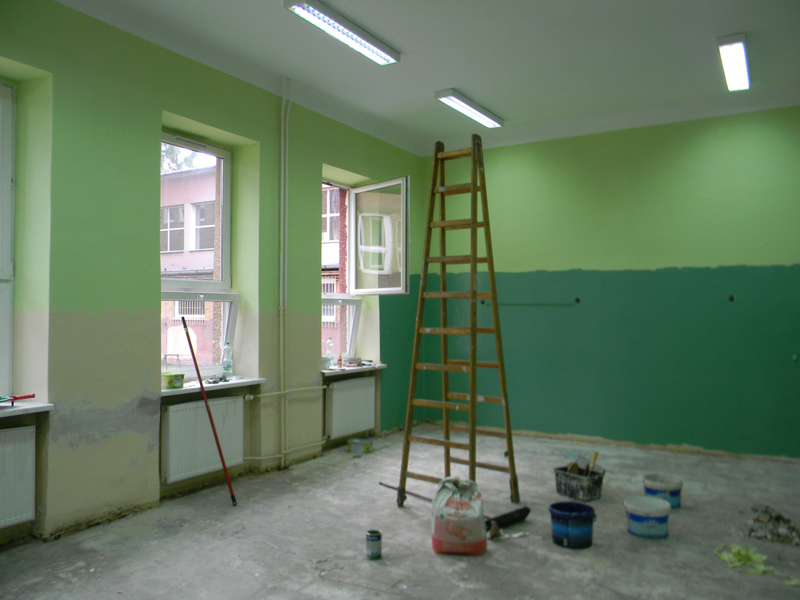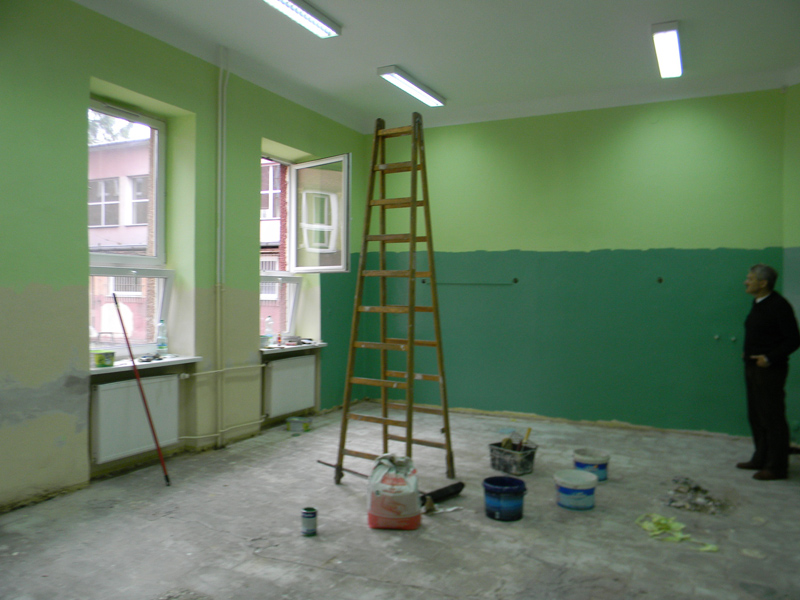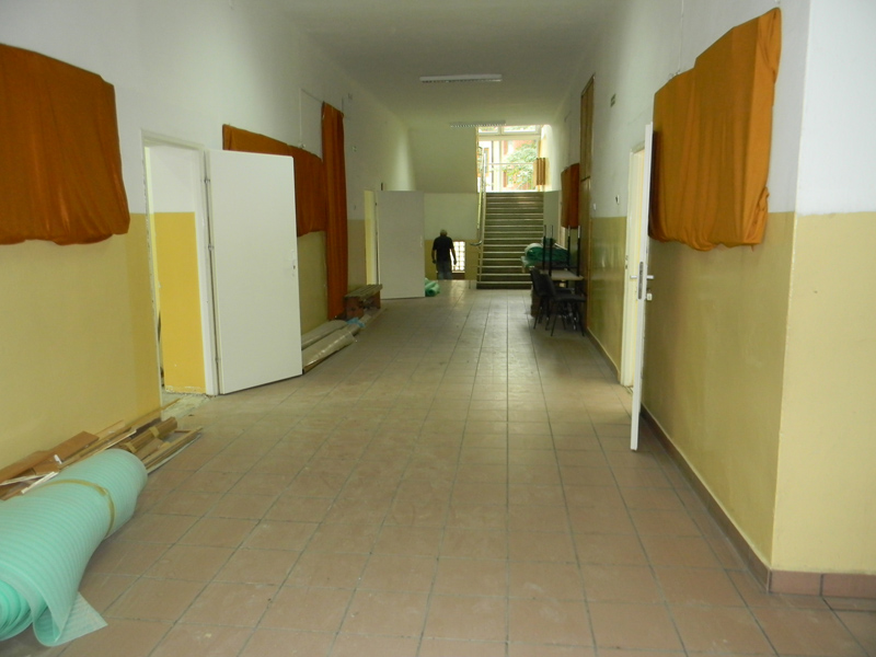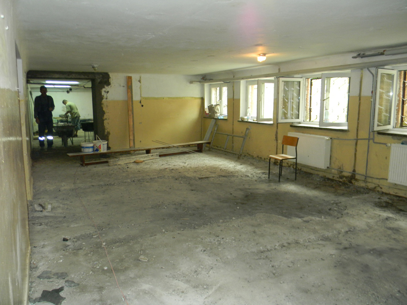 Dotychczasowe będą częściowo przeniesione, do zaadaptowanych na parterze czterech klas szkolnych, a część pozostająca w piwnicach zostanie całkowicie odnowiona i przebudowana. Prace remontowe polegają na zdarciu starego tynku, podłóg, wyrównaniu i odmalowaniu ścian, ich częściowemu wyburzeniu, przebudowaniu, zamontowaniu nowego oświetlenia i przede wszystkim przystosowaniu na potrzeby uczniów szkoły. Powstaną zamykane boksy dla każdej z poszczególnych klas uczących się w szkole. Stare wejście do szatni zostanie zamurowane i w zamian powstaną nowe schody w nieco innym miejscu. Po obu stronach szkoły powstaną, dodatkowe dwa zewnętrzne wejścia. Od strony południowej będzie bezpośrednim, ogólnodostępnym dla uczniów szkoły wejściem do szatni, natomiast północne stworzone będzie na potrzeby bezpieczeństwa i zagrożenia pożarowego zgodnie z wymogami BHP i p.poż. Wszystkie podłogi zostaną ujednolicone, położony będzie bezpieczny oraz wytrzymały gres. Powstanie pomieszczenie gospodarcze m.in dla szatniarzy i pracowników porządkowych.