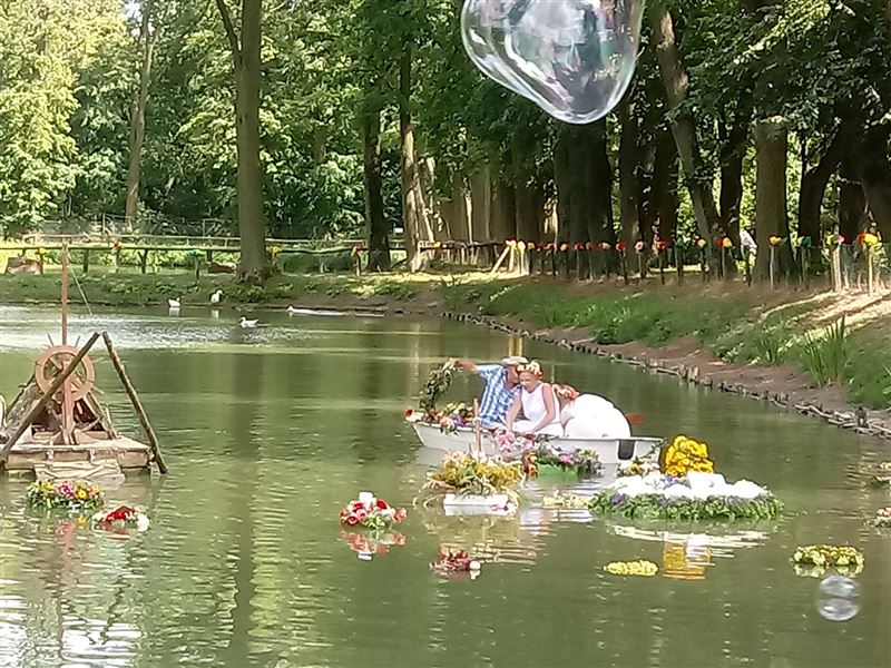 Jak nakazuje tradycja „Nocy Świętojańskiej” pojechaliśmy tam z naszym wianuszkiem, który jak wiele innych puszczony był na wodę. Całemu obrzędowi towarzyszyło wspólne śpiewanie przy muzyce granej na żywo. Dziękujemy organizatorom za zaproszenie i wspólną zabawę.
