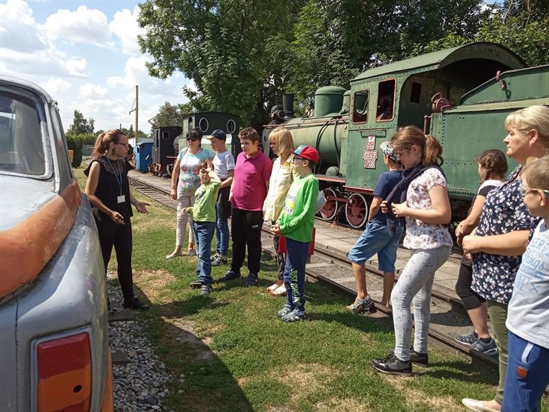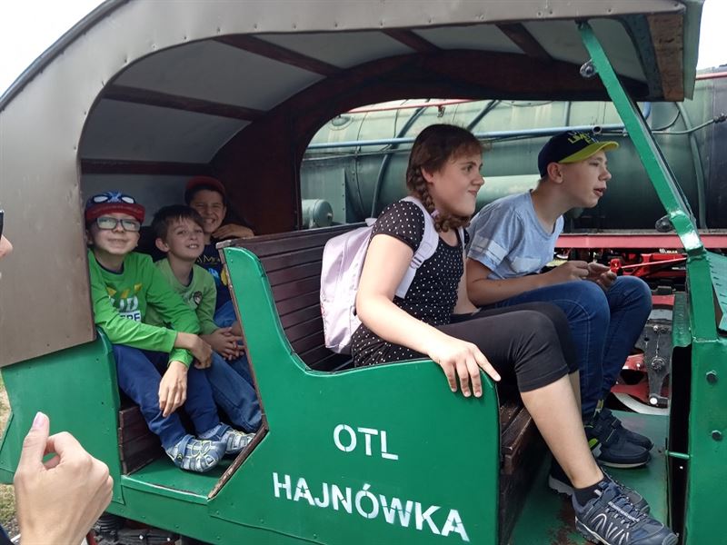 W ostatnim – piątym dniu półkolonii dzieci odwiedziły Muzeum Kolei Wąskotorowej w Sochaczewie. Pojazdy szynowe bardzo podobały się wszystkim uczniom a zwłaszcza chłopcom. Podsumowaniem wizyty były warsztaty plastyczne, na których dzieci miały okazję przedstawić wspaniałe lokomotywy.