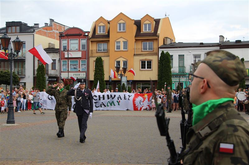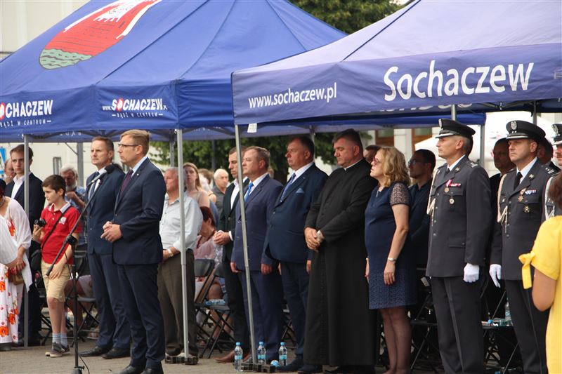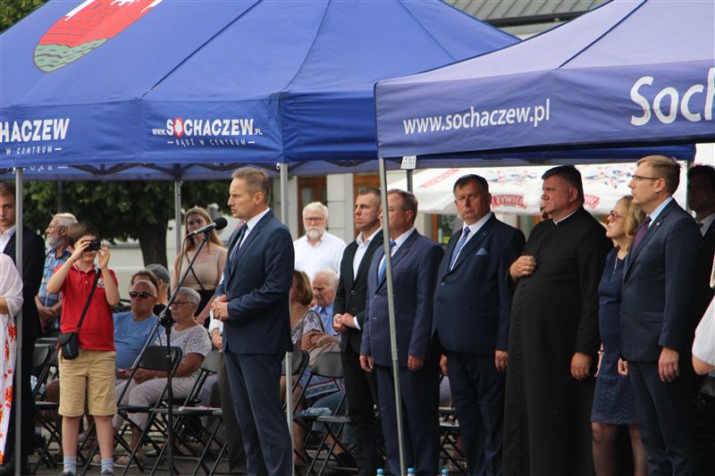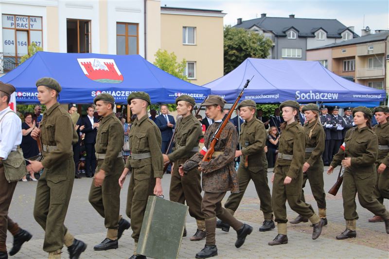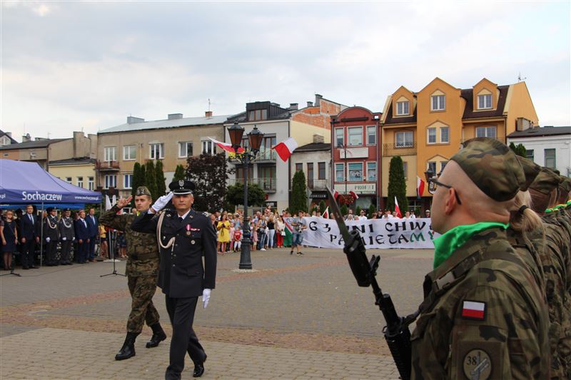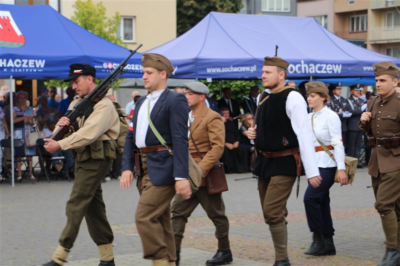 Na placu Kościuszki nie mogło zabraknąć pocztów sztandarowych, oprawy jednostki wojskowej z Bielic. Był dźwięk syren, Mazurek Dąbrowskiego, wybrzmiała salwa honorowa i odczytano apel pamięci, na maszt zaś wciągnięto flagę Polski a wszystko w oprawie Wojskowej Asysty Honorowej. Wystąpienia okolicznościowe wygłosili Piotr Osiecki, burmistrz Sochaczewa oraz Maciej Małecki, poseł na Sejm RP, którzy podkreślali bohaterskość zarówno cywili, jak i żołnierzy, ich patriotyzm, odwagę, siłę i wielkiego ducha walki o wolną Polskę.
